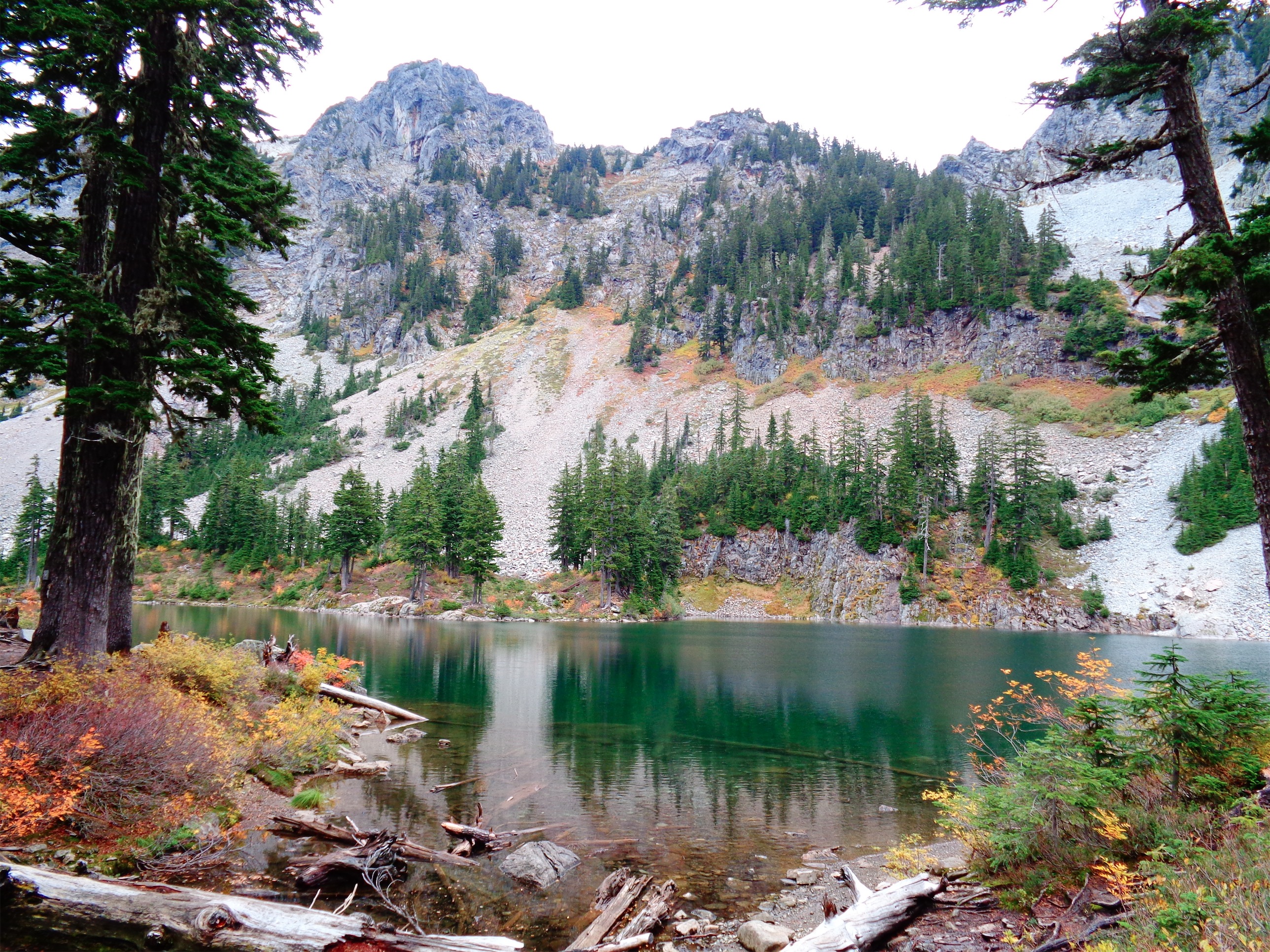 Melakwa was beautifully clear, another turquoise alpine lake. Man, now I’m even getting spoiled with lakes. The other hiker was totally right, it was a great cloudy day hike, because the color still stood out, and with some fall colors along the bank for contrast, it was a great destination. What I didn’t realize is that there are actually two lakes! This is the lower lake. I didn’t make it to the upper lake, since I didn’t know it existed. There’s also a pass to a ridge behind them that you can climb easily (so they say), so next time I go back, I’ll have to make it up to the ridge. The views are probably wonderful. And it’ll look even better if those peaks in the back are capped in snow.