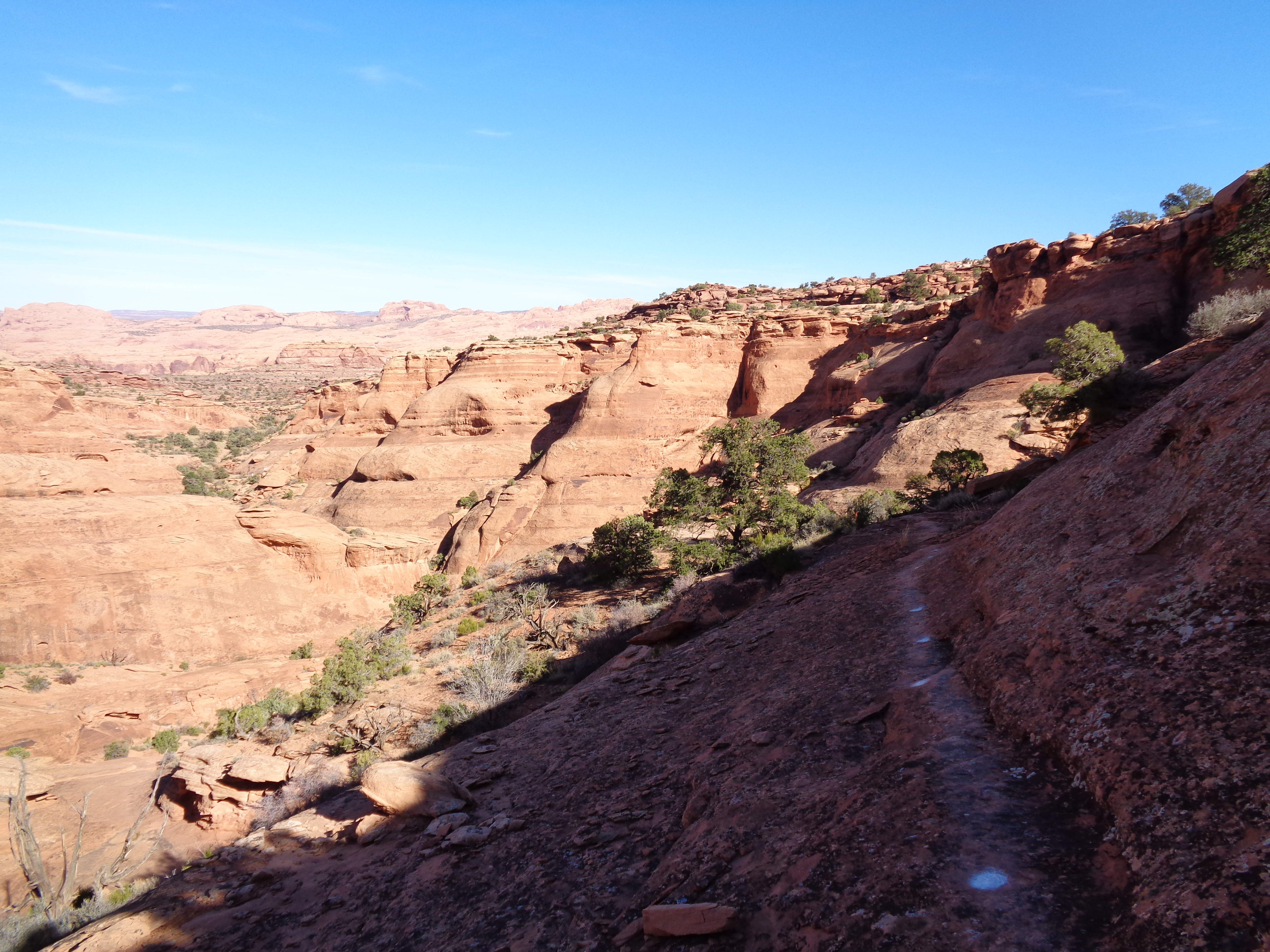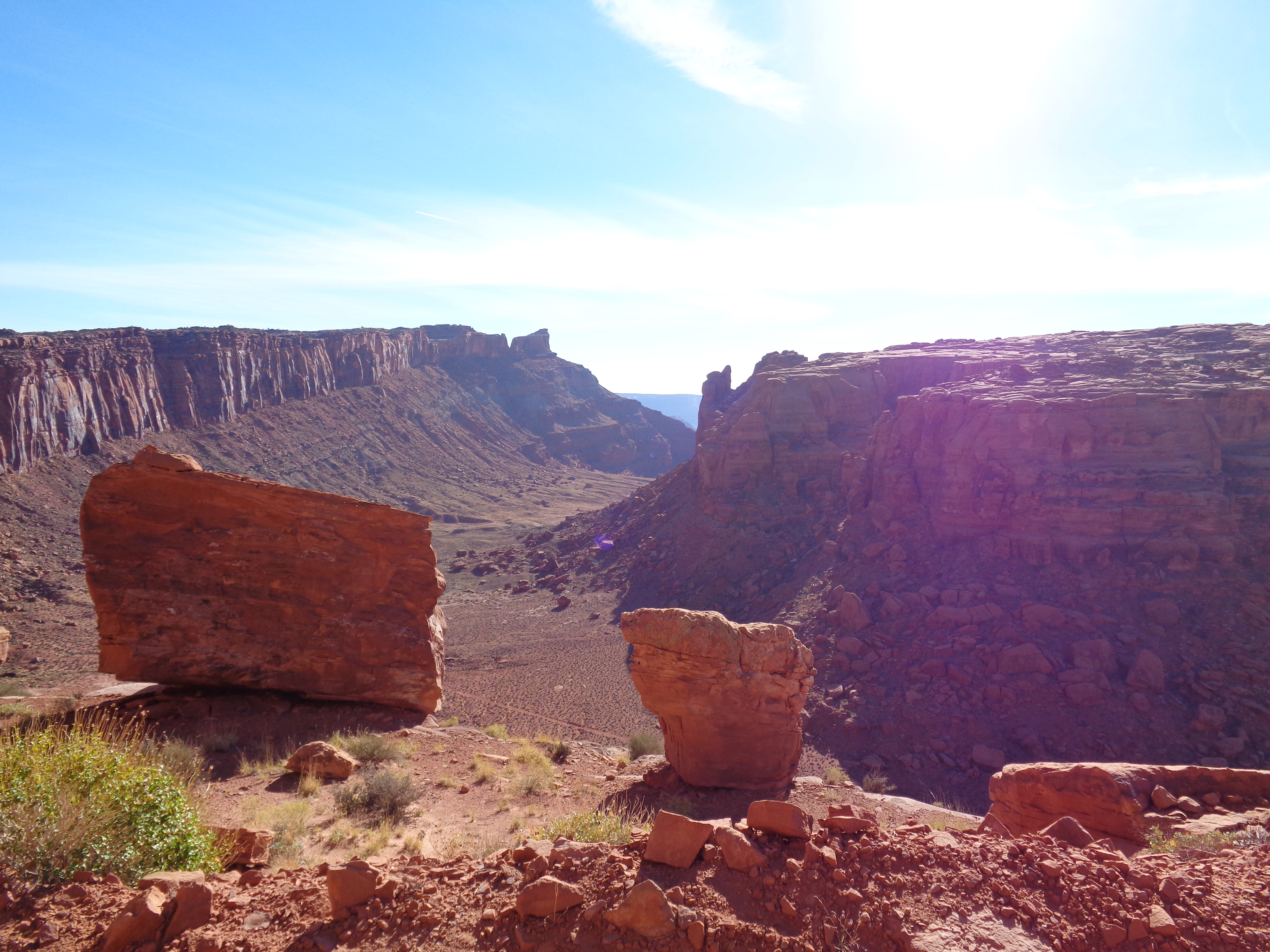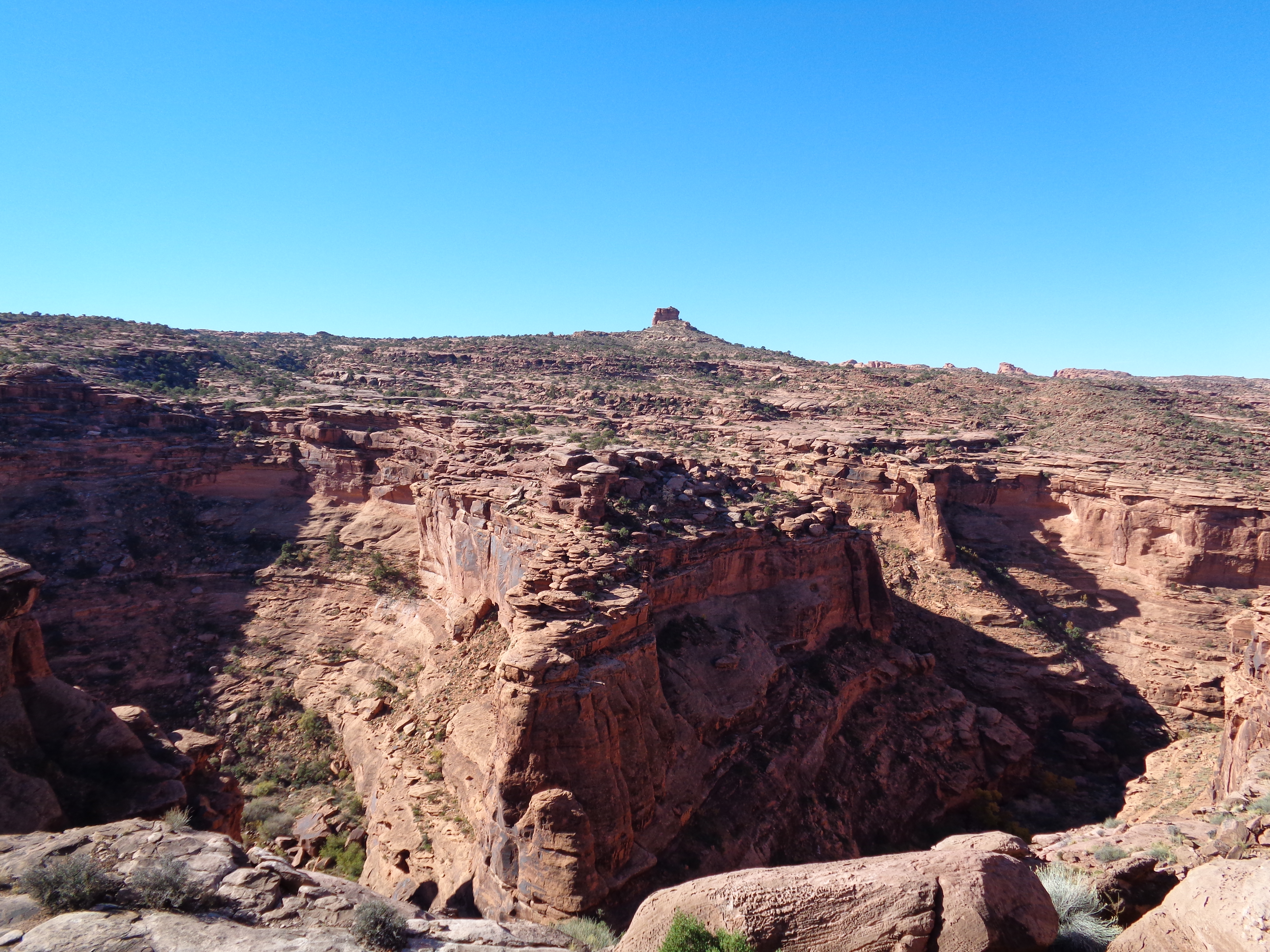 Along with arches and windows and cliffs were enormous canyons. The one to the left is actually one that we ended up running through after descending down the wall at a (slightly) less steep grade than what you see.