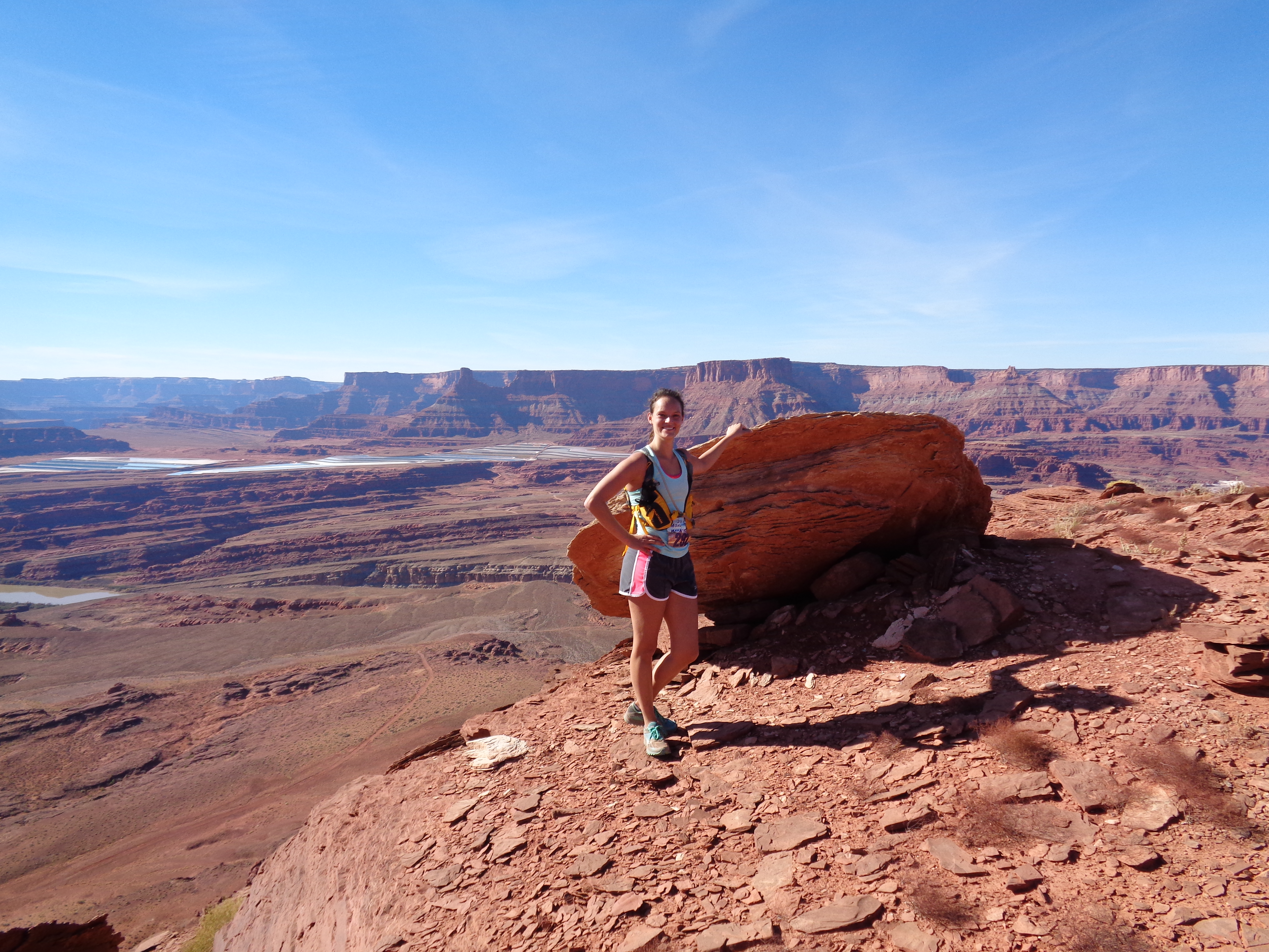 After the out-and-back and some running down a gravel road (a relief from sand and footwork) comes the hard part. My own personal hell. At least until I climbed Rainier. Now Dissapointment Cleaver is my personal hell. Aptly named, right? But until then, it was miles 14-16 of this marathon. Straight up, gaining around 1500ft of altitude in just over a mile. When I ran it last year, I had been training in Chicago. The flatlands. I drove for an hour and a half to find a hill, and the hill probably only gained 30 feet in elevation. This was the neverending mid-marathon climb. I was ready to curl up and be helicoptered home last year. Maybe it’s the hiking, maybe it was the change in attitude, but this year, it was a million times better. More like a stroll in the park. Okay, not a park, but still. It went by much more quickly, and before I knew it, we were at the top. It’s the pic at the top of this post – me by that rock overlooking a huge ass canyon.