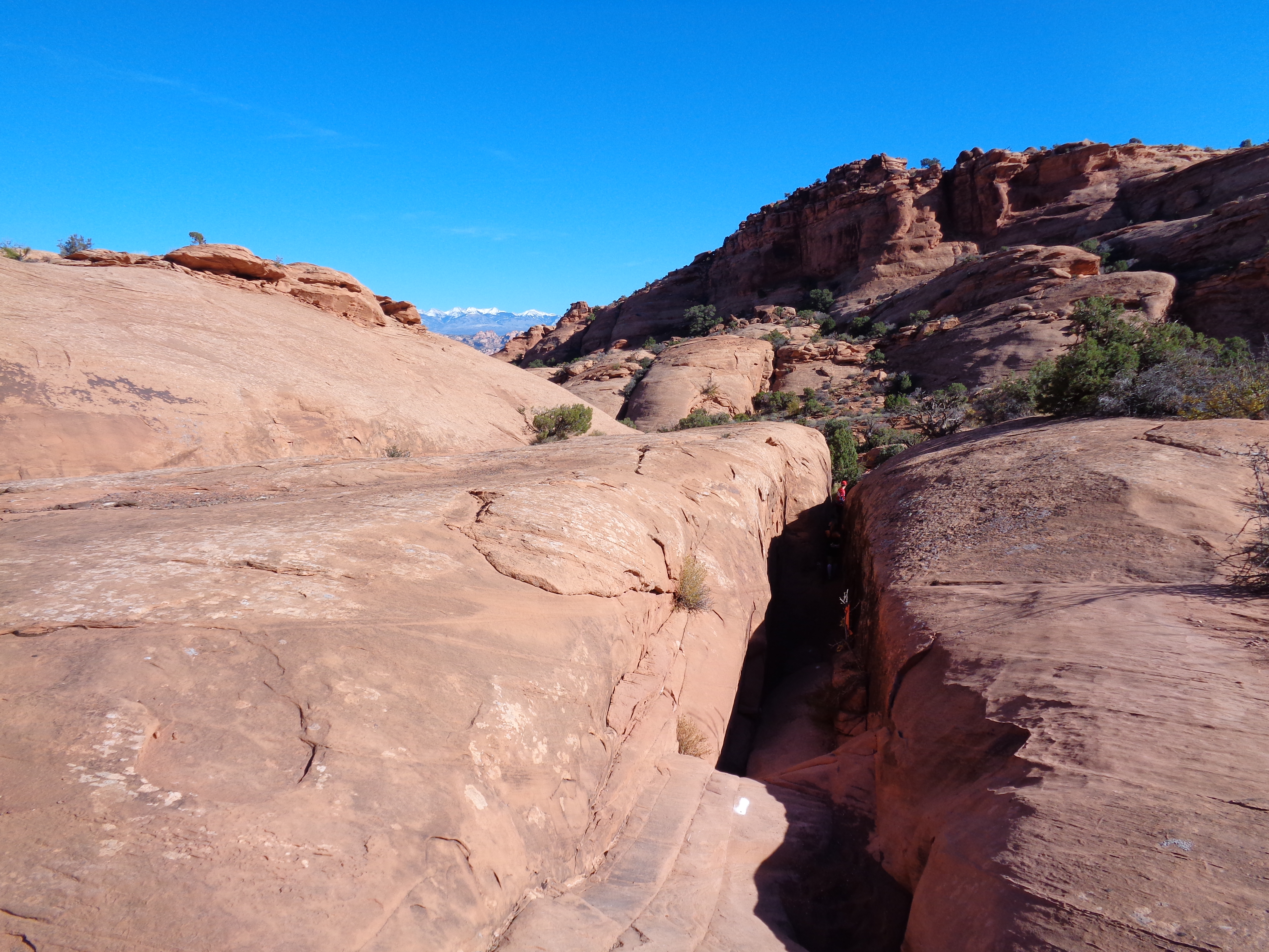 Here’s another fun part, squeezing between two walls. I took this from above, but you’re about ten feet down in that crevice. I had to turn sideways to fit through, so you can’t exactly run through it. It’s the real-desert-canyon feel. 127 hours, no thanks.