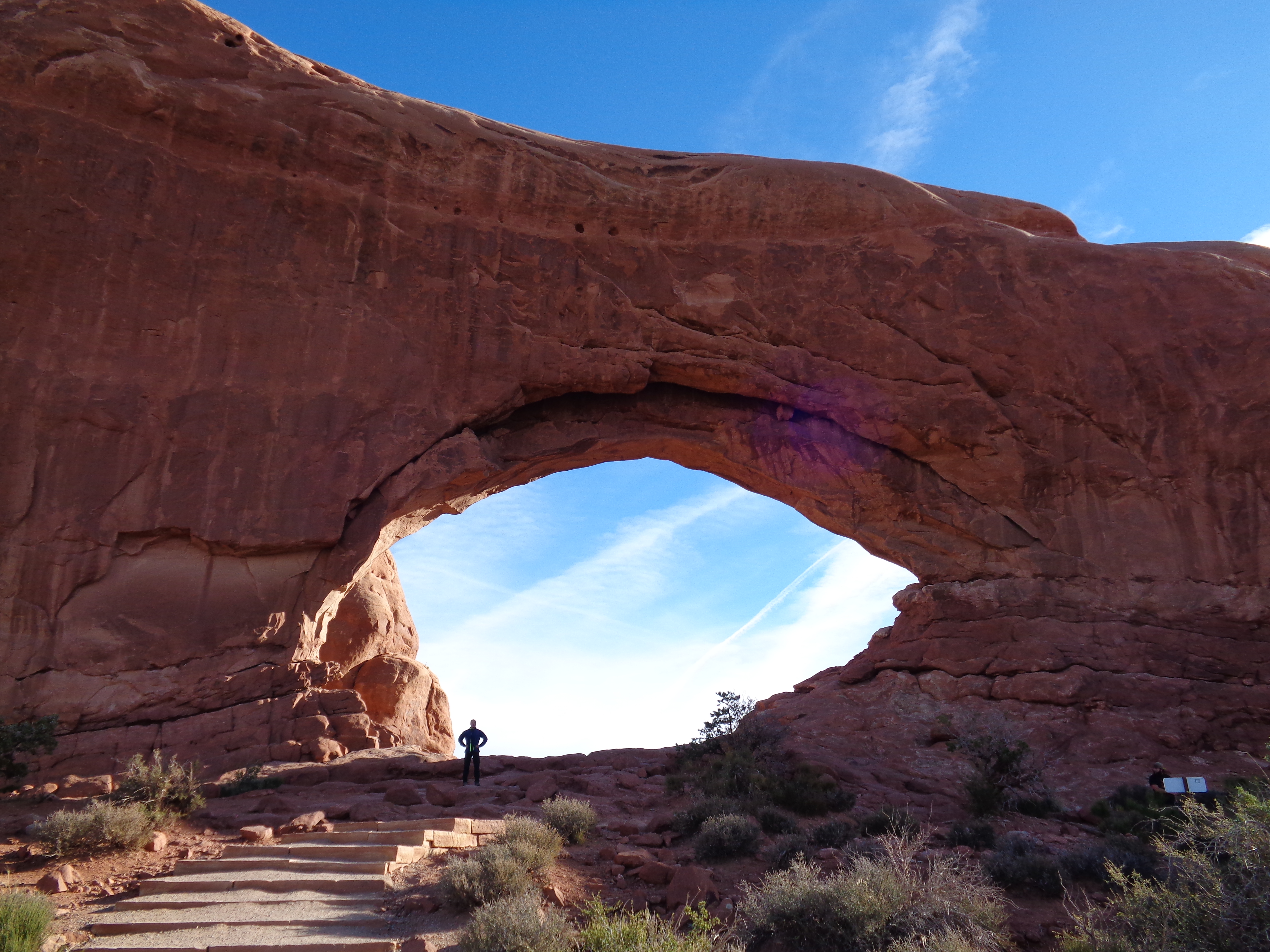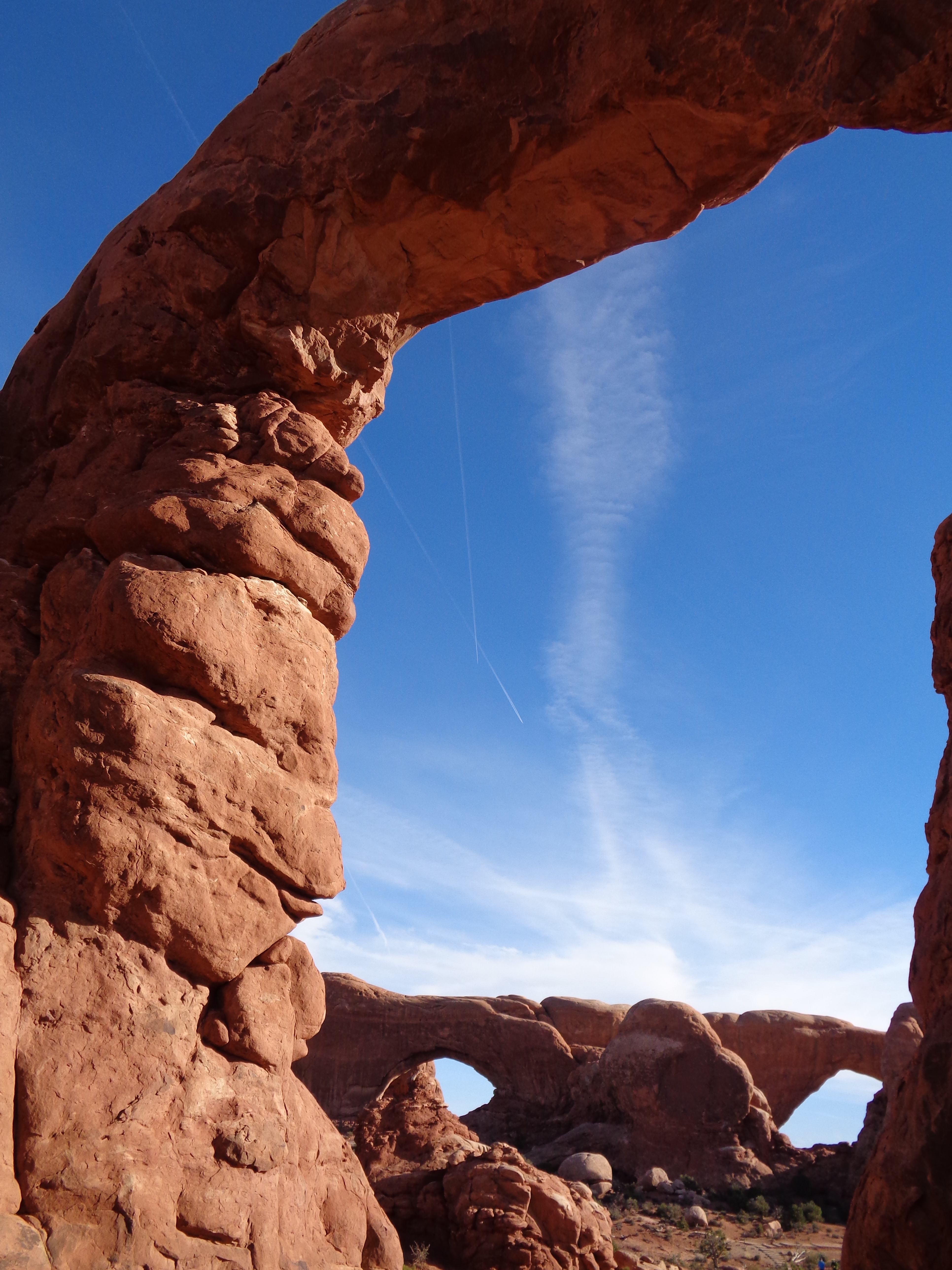 Arches National Park is pretty small, and I bet if we had time, we could have seen most of it in just a day or two. But we stopped by the ranger station to ask for recommendations, and they gave us this one, which was supposed to be the biggest “bang for your buck.” They were right. Something like five arches and three windows? Six if you count the double arch? The photo to the right isn’t a double arch, it just happens to be two arches viewed through a third arch because I’m awesome.