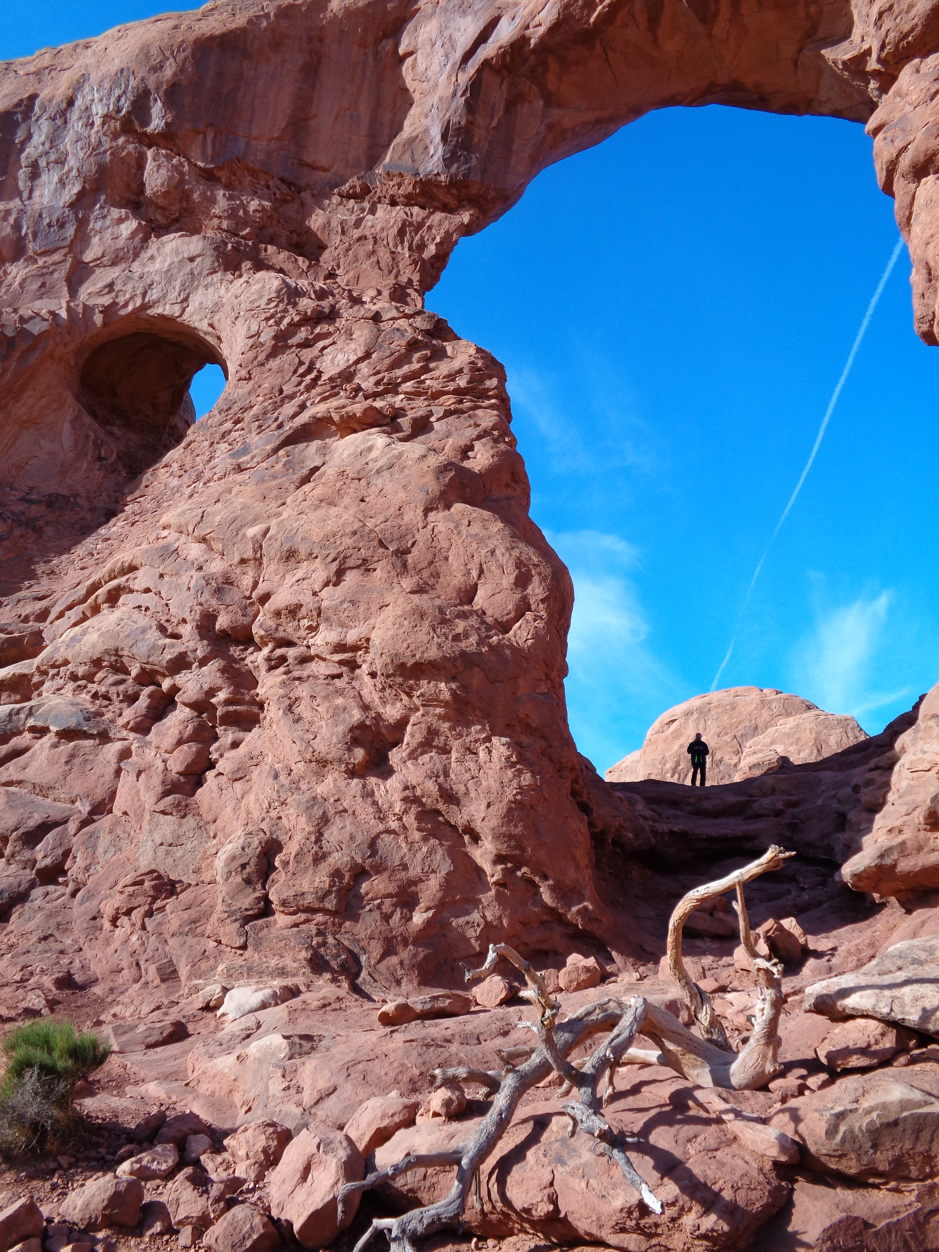 We spent a little over an hour exploring and climbing all of the arches we could. There’s one out there that you can actually run across. As in run up the top of an arch. I didn’t know that until yesterday, though, so we missed out on that. You know what’s not awesome? Waiting for someone who’s texting from beneath an arch. He spent a solid ten minutes texting. Look where we are! Text later!