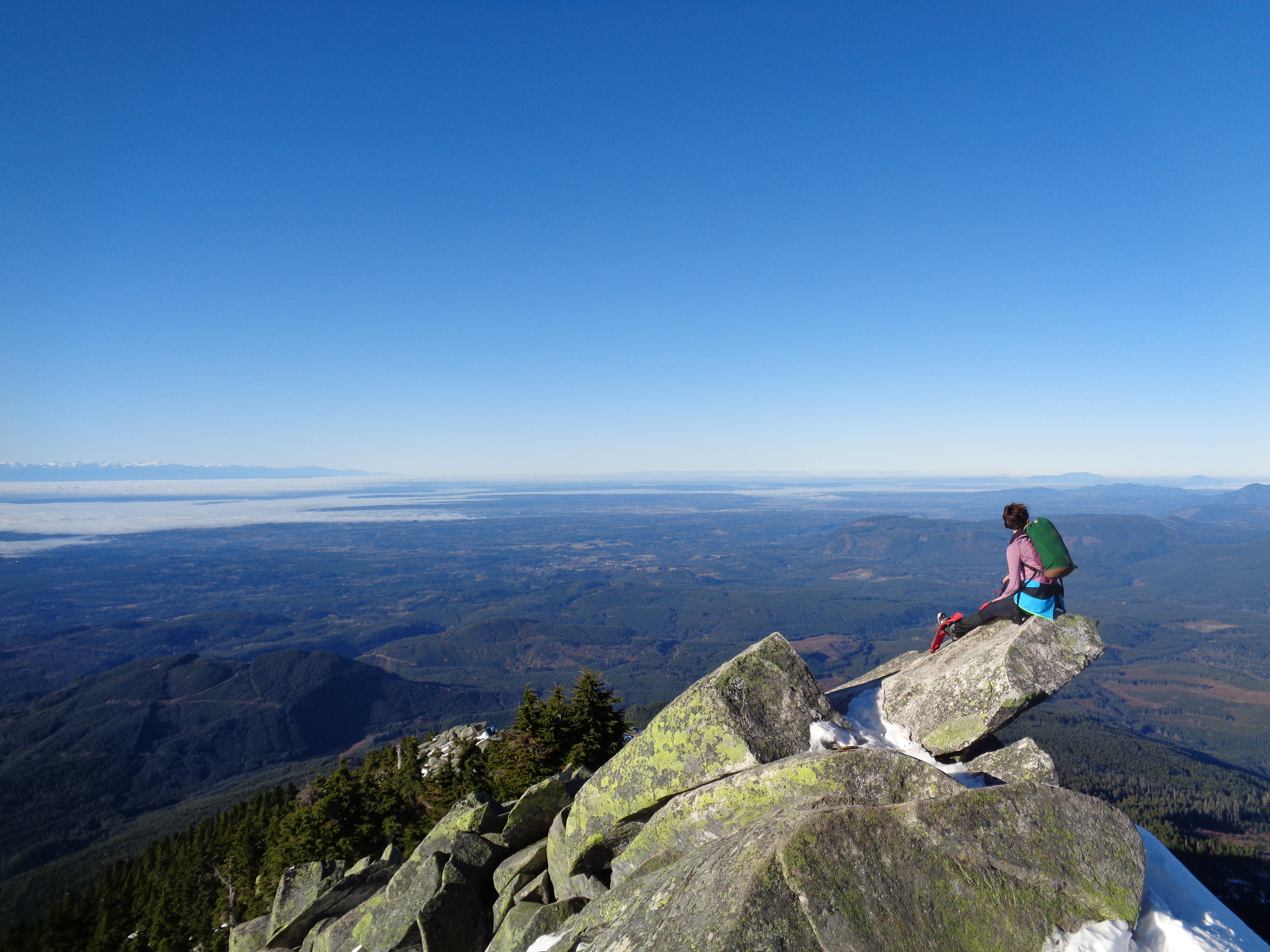 Once you hit the snow, peaks stark making their presence known through gaps in trees. Eventually you’re crossing some small talus fields and views take over. Looking back towards Seattle. Over the Puget Sound. The first time I hiked Pilchuck I looked at the sound, turned to Emilie, and said “Is that Lake Washington?!” By now I know at least a few. Glacier Peak, Baker, Shuksan, Twin Sisters, they’re all out. A surprisingly convenient viewpoint for so many peaks in the Cascades, so close to Seattle.