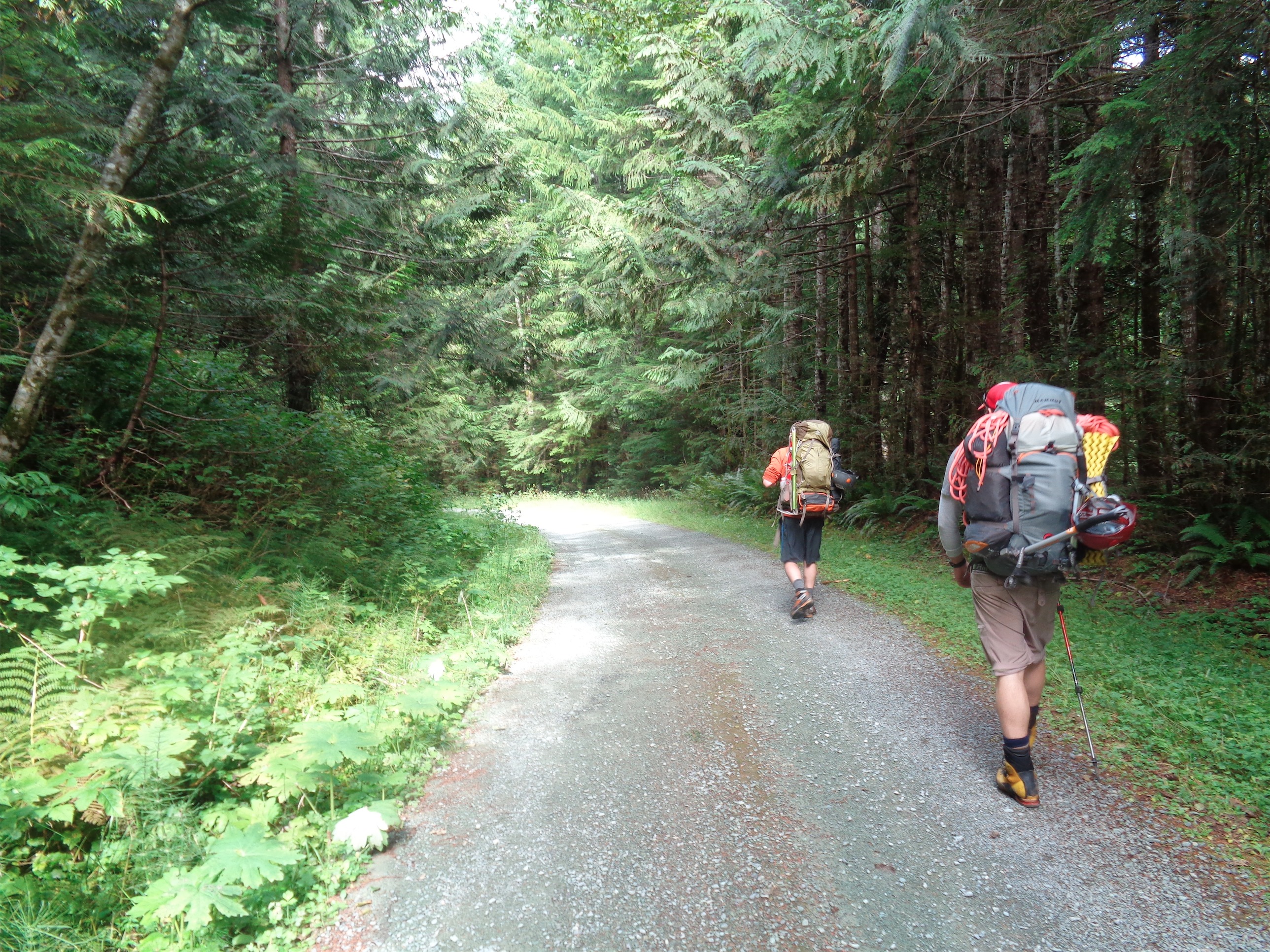 We hiked six miles to the Baker Lake road. Ben noticed I was limping a bit – I have no idea what happened, but some tendon in my knee was not happy with the forest road. I’ll never know. I was dreading it, though. I didn’t think anyone would pick us up. I didn’t think anyone would even pass, and highway 20 was another 22 miles away or something hideous like that. I was resigned to having to tell my coworkers that the reason I didn’t come to work was because I was sleeping on the side of the road like a hobo.