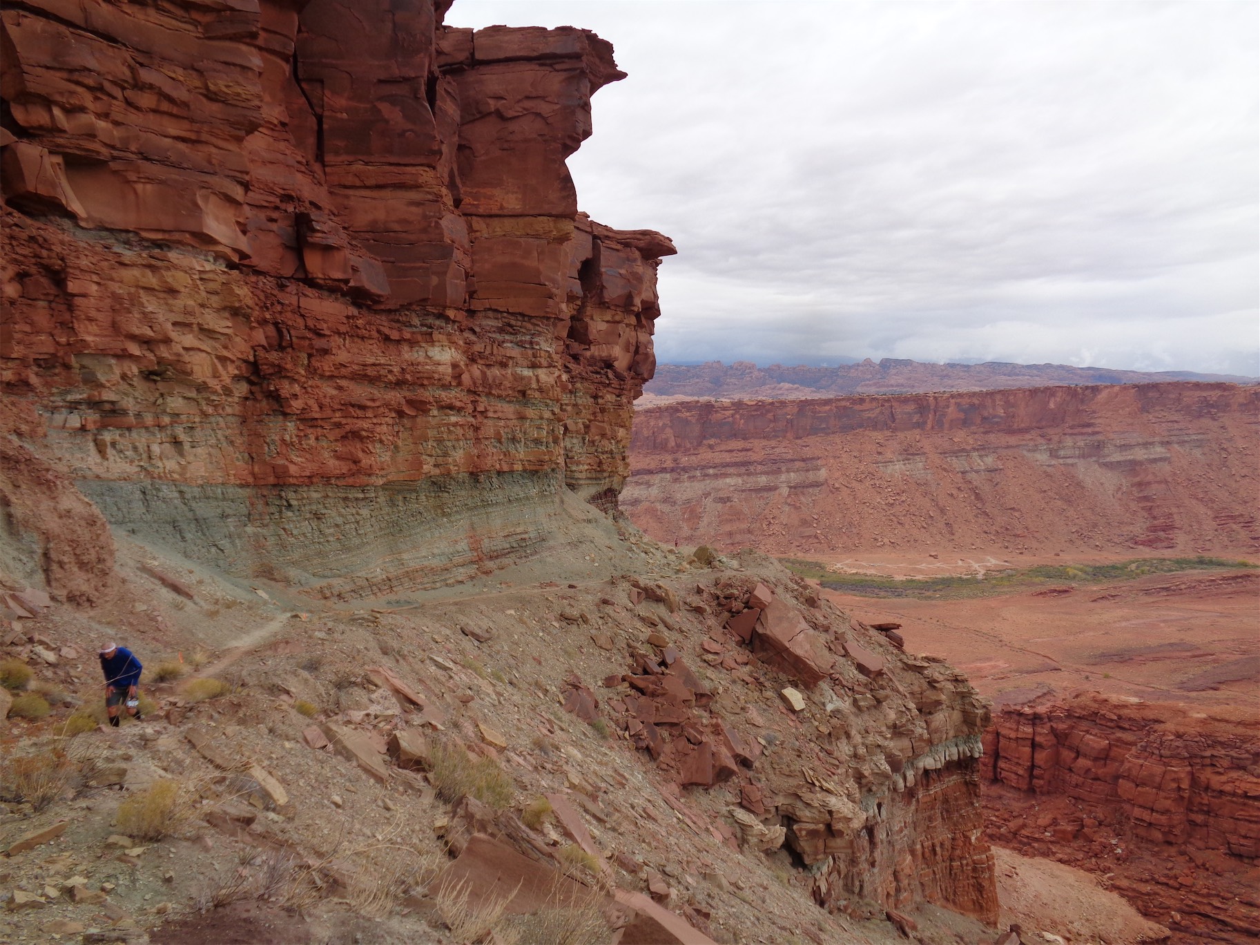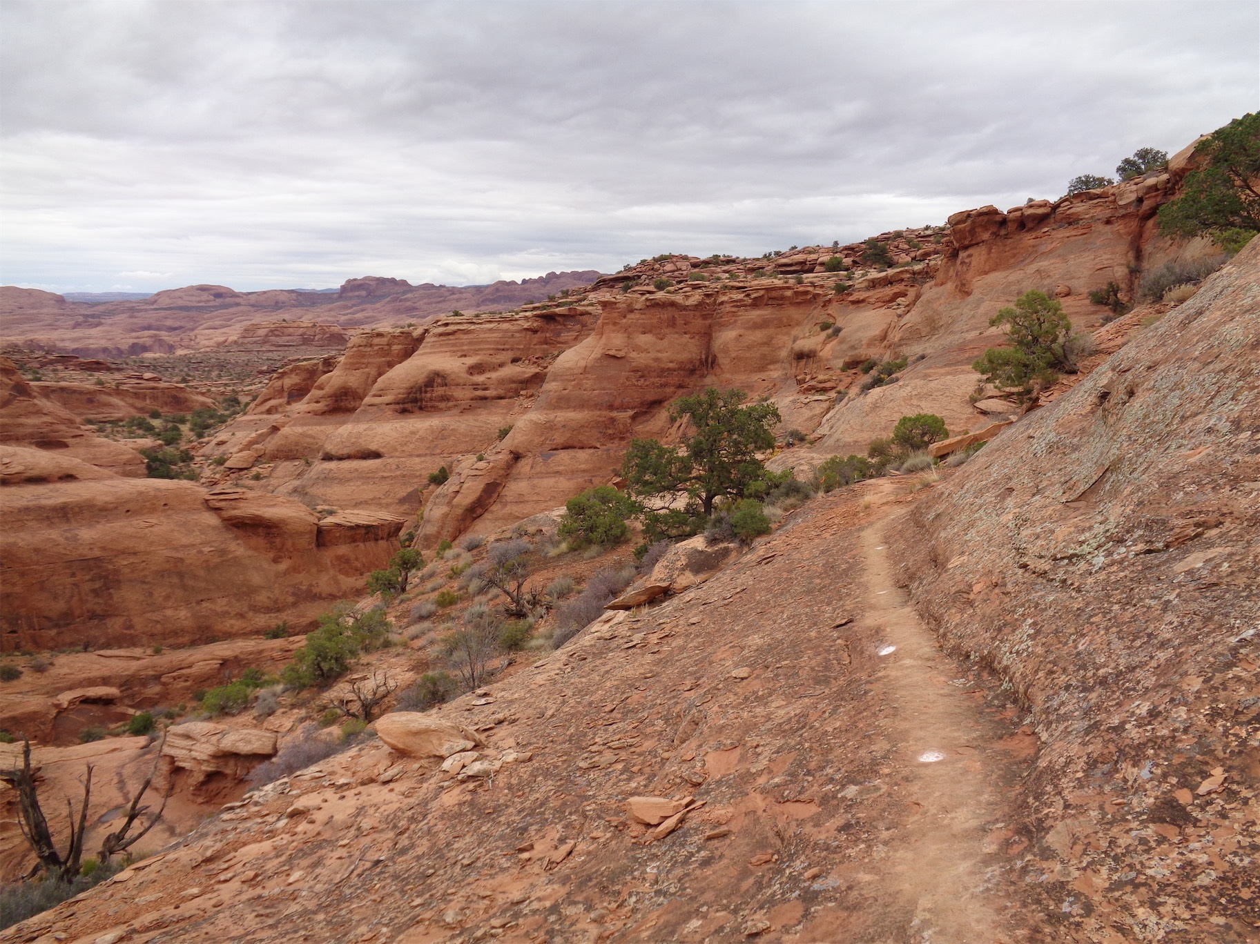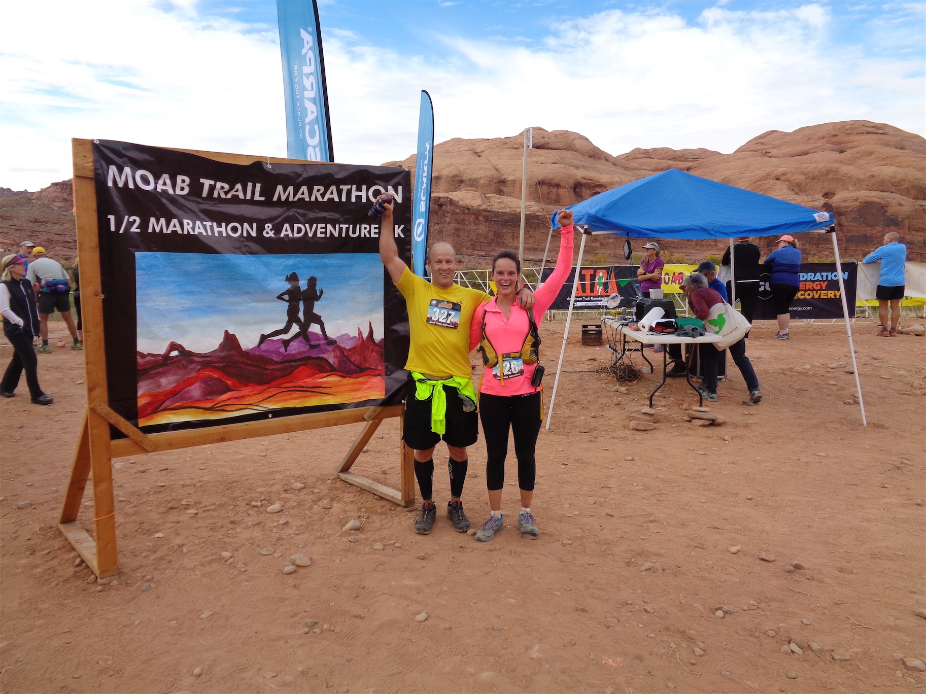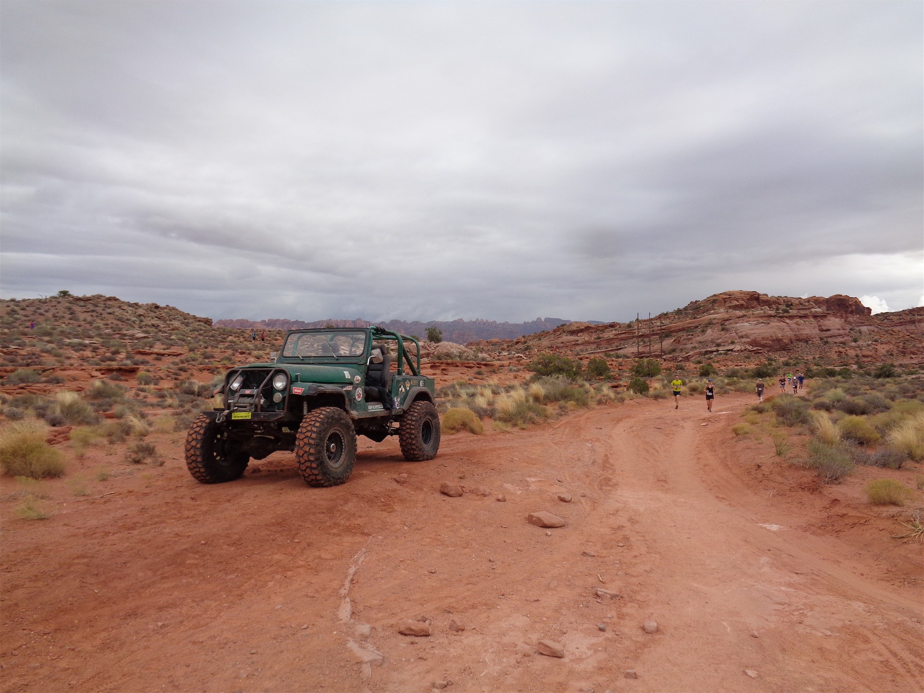 Oh, did I mention that the one day I fly to the desert is the one day it’s cloudy/drizzly in the entire second half of 2016? Yeah, it was rainy. In Moab. The desert. But that packed down some of the dust, and made the sandy parts easier to run. I had popped aspirin which is my only hope of easing my calf issues, and it kept them at bay, like a 5/10 on the swollen scale instead of 9/10 like a few of the past runs. And of course, mentality has a huge impact on any race. Everyone was jogging, we were darting to the sides of the trail to take photos and marvel at views and for once I did not bitch when there were bottlenecks in front of us, which is an unfortunate reality with any single track trail race, especially one that has a few scramble sections. Second tip: Take all of the photos. It’s a break without admitting you’re taking a break.