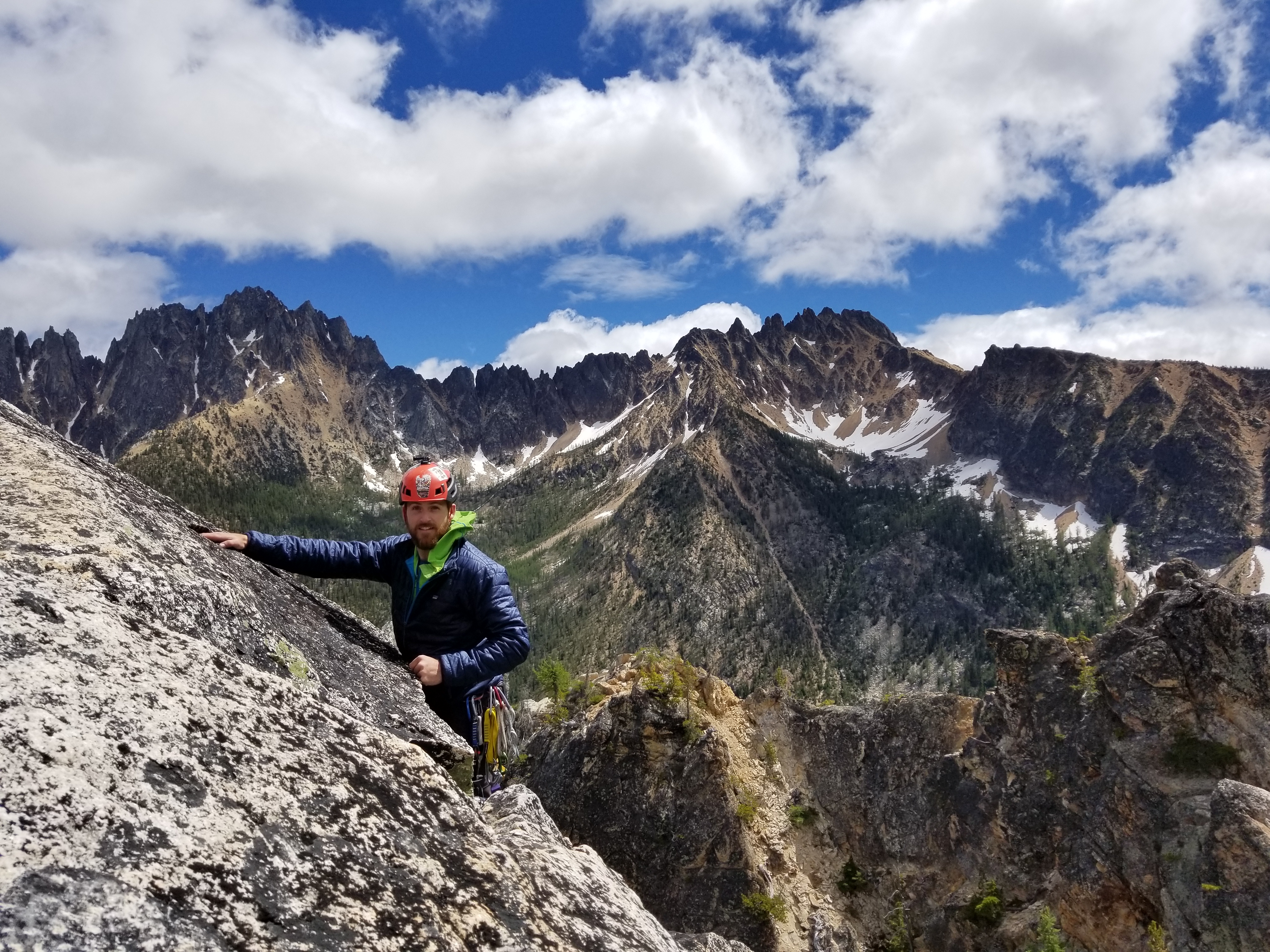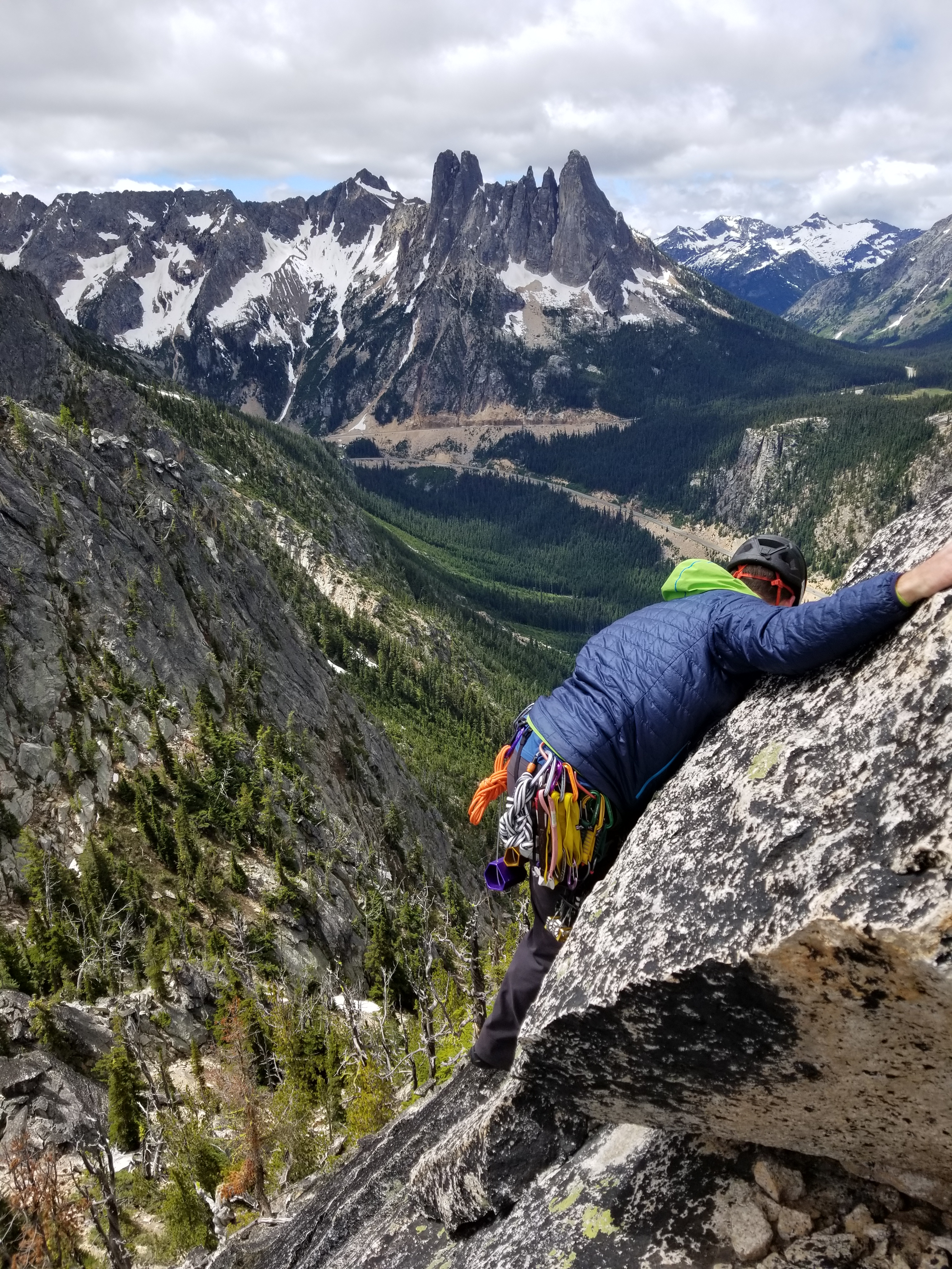 This is a seriously awesome climb for someone looking to build confidence in swinging leads and leading 5.7. Most of the pitches didn’t feel like 5.7 and only the second pitch got a bit run out (but like I said, not sure we were on the true second pitch). The upper pitches are just fantastically fun, solid climbing and somehow we only ran into two other parties. One bailed after the second pitch and the others were still hiking up as we hiked out. So we basically had the whole thing to ourselves, which is insane for a 5.7 climb at WA Pass with a 1hr approach.