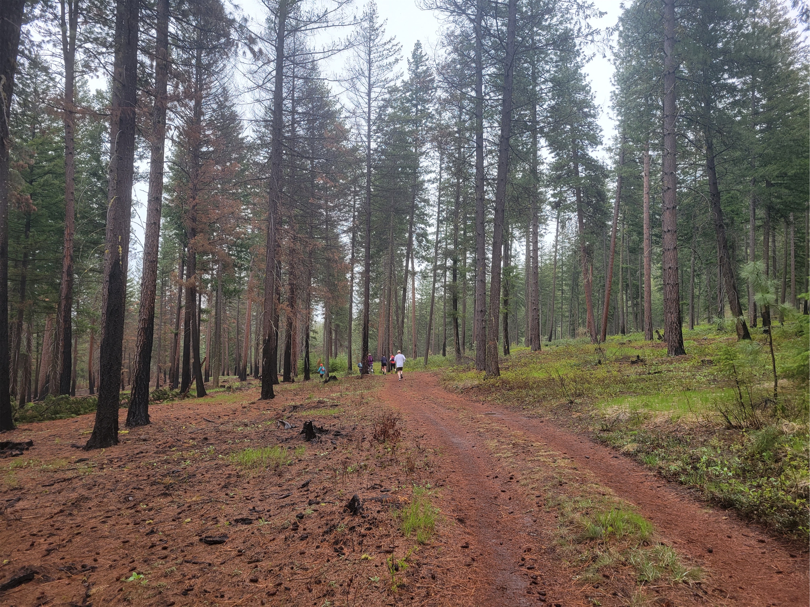 The trail stayed wide open and flat, very well cared for. We ended up on a long gravel/dirt road (mostly mud that day) and back on singletrack trails through a burn zone from the prior year. It was totally bizarre, you could see huge holes where (i think) there used to tree stumps and root systems, the uphill burn was more apparent than the downhill, it looked like two different forests. No morels though, I looked. No morels in miles of burn zone. Not that I’d have known what to do if I did find a cluster. Carry them in my hands for 20 miles?
