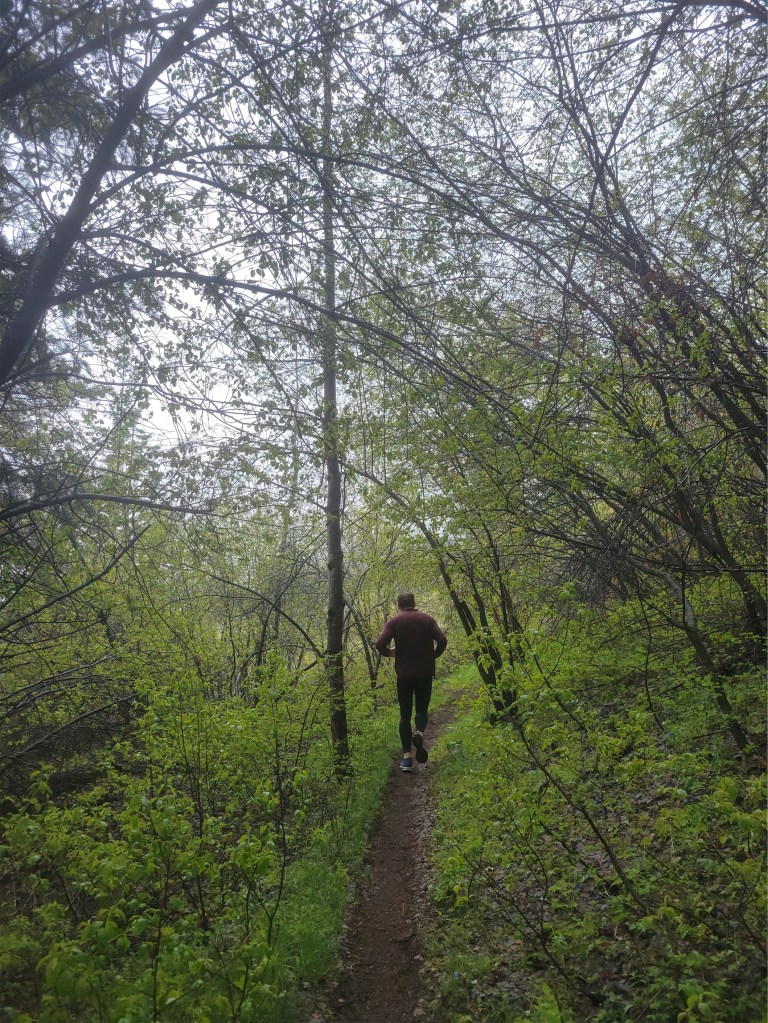 The trail went back into forest and wrapped around a lake where I briefly wondered if I was lost (no, there was literally nowhere the trail ever split, there’s nowhere else you could have possibly gone) before putting us out on a stretch of muddy road with frequent cars passing. This was somewhere around mile 20 according to my feelings, but rather than getting sad and sluggish I was belligerent (and also sluggish). Every car that passed I went OFF in my head. WHY ARE YOU HERE THERE’S A RACE WHY DID THEY CHOOSE A BUSY ROAD THIS ISN’T SINGLE TRACK TAKE YOUR MUD AND GTFO OF HERE I WAS TOLD THERE WOULD BE FLOWERS NO, MAZDA, YOU HAVE 12 FT ON THAT SIDE OF THE ROAD THESE 3 FEET ARE MY FEET THERE ARE MANY OTHERS LIKE IT BUT THIS STRETCH IS MINE and how the fuck did i not buy margarita shot blocks? that aid station better have some god damn potato chips or I swear. A relay runner passed me breathing heavily and loudly and sprinting. It generated similar fury to hearing someone snore loudly at 2am and being helpless. The old running mantra from high school cross country popped into my head. Dig deep in the woods. 15yrs later and I’ll still think of that when I’m dying on a run. Even if I’m on a stupid muddy road with stupid cars driving to probably stupid places in the stupid rain and I’m all out of crackers and I never want to hear this person’s breath ever again.