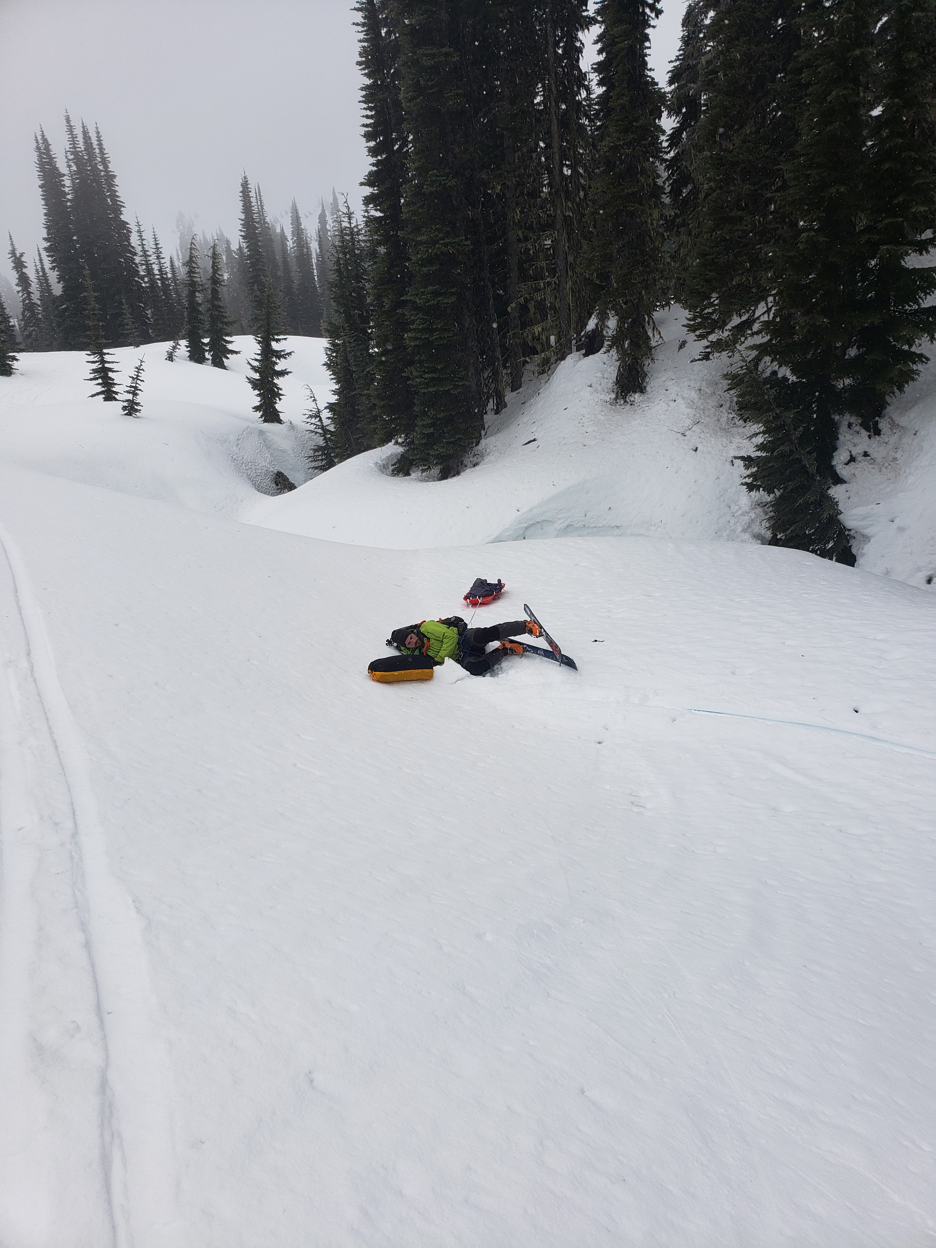 I woke up at 6am, truly believing in my deepest of hearts that it would. be. sunny. Narrator: it was not sunny. It’s amazing that you can believe so hard in something and have it not be true. Whatever. I guess free will doesn’t exist. Love isn’t real. Karma doesn’t actually come around. We’re helpless. Nothing matters. It started to dawn on me that the next day I’d be getting on a plane in soggy clothes with a pack full of soaking wet gear after four days in soaking wet weather that I busted my ASS to make happen. What can you do but laugh? We dined on stroop waffles heated over the steam from the water we boiled to drink, to various name-that-tunes: stroop, there it is. stroop, stroop ba doop, stroop ba doop. Like everything else, my existential crisis also doesn’t matter, not when faced with Costco snacks. We packed up once again and started off.