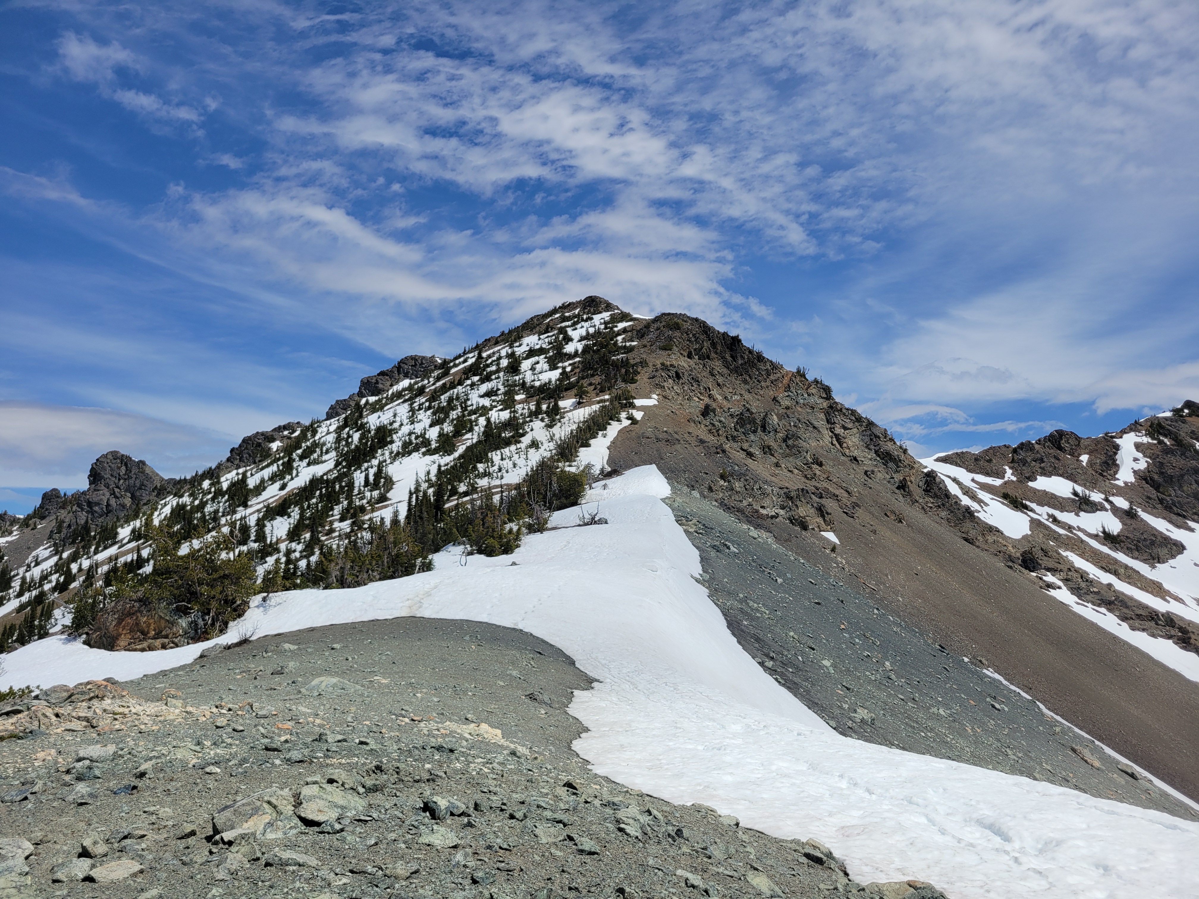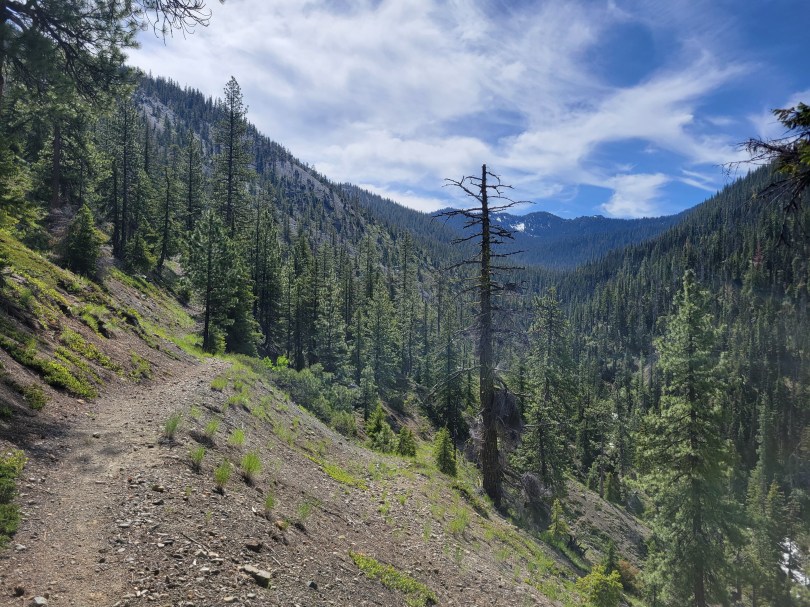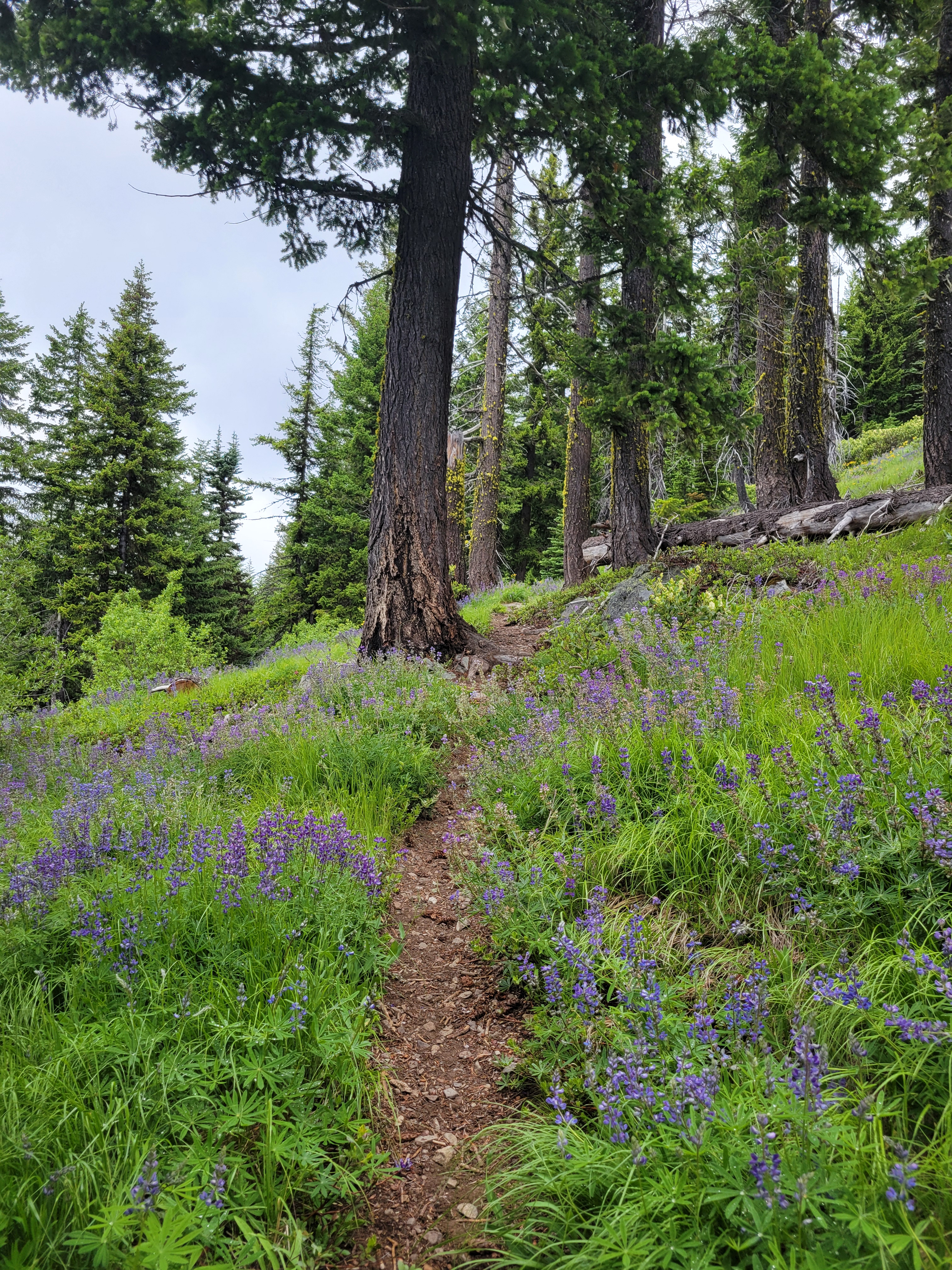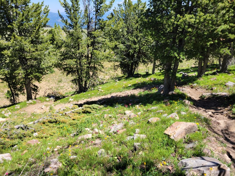 And we crested the pass and what did we see?! Was it more larches?? You bet your ass it was more larches. The trail snaked along the gravelly hillside (tease!) before turning straight into the next grove of larches. Trail optimized for larches.