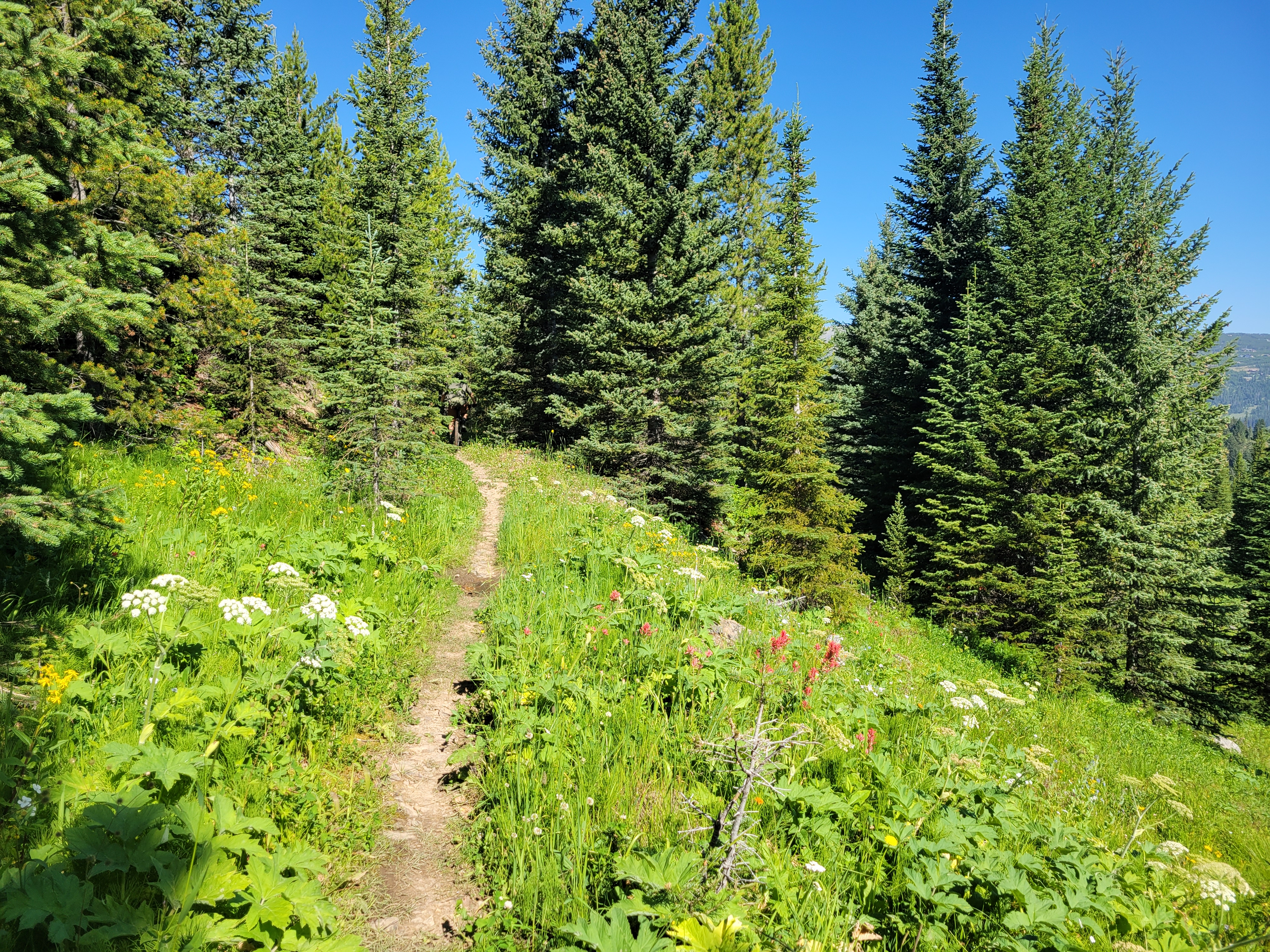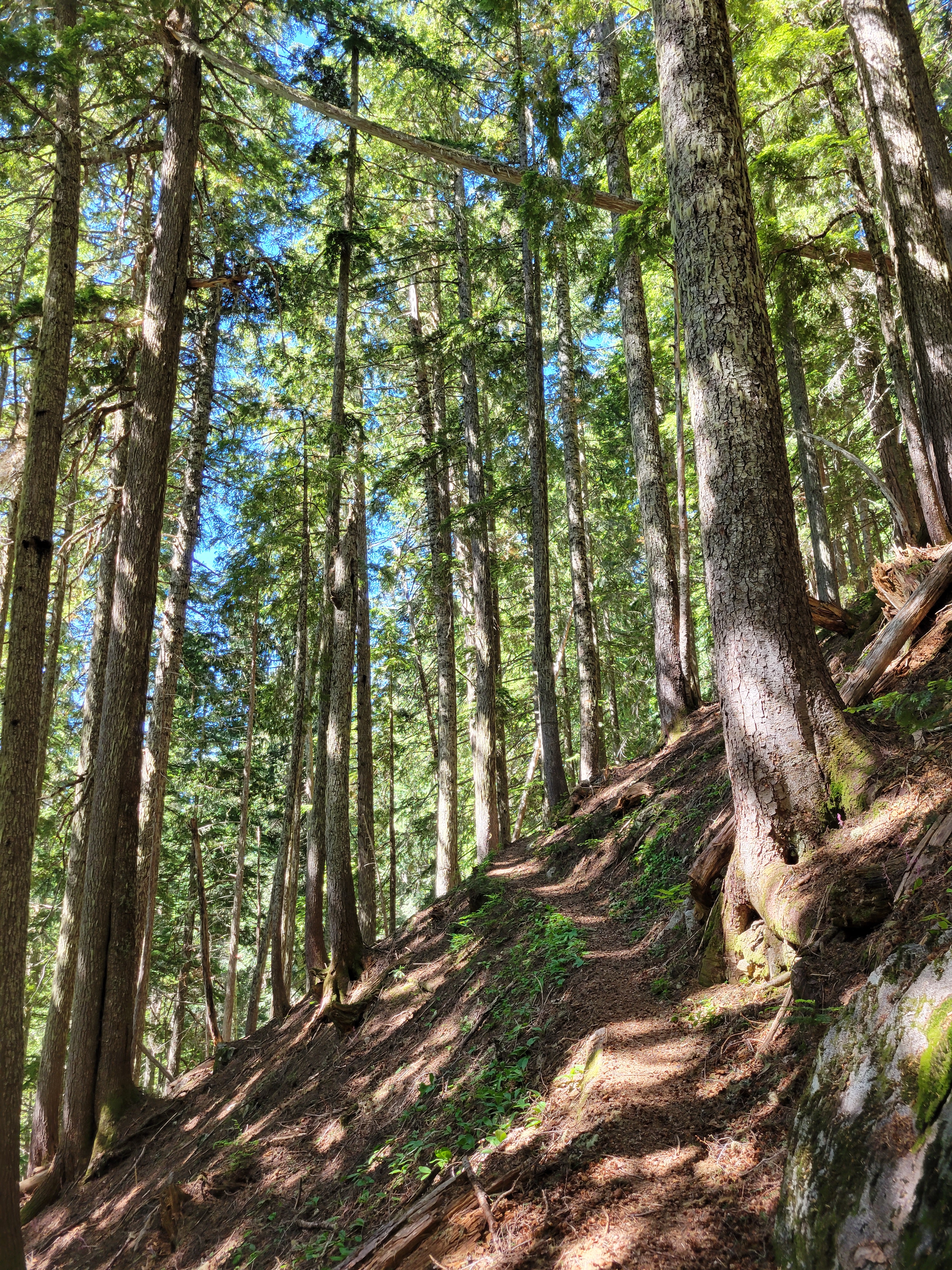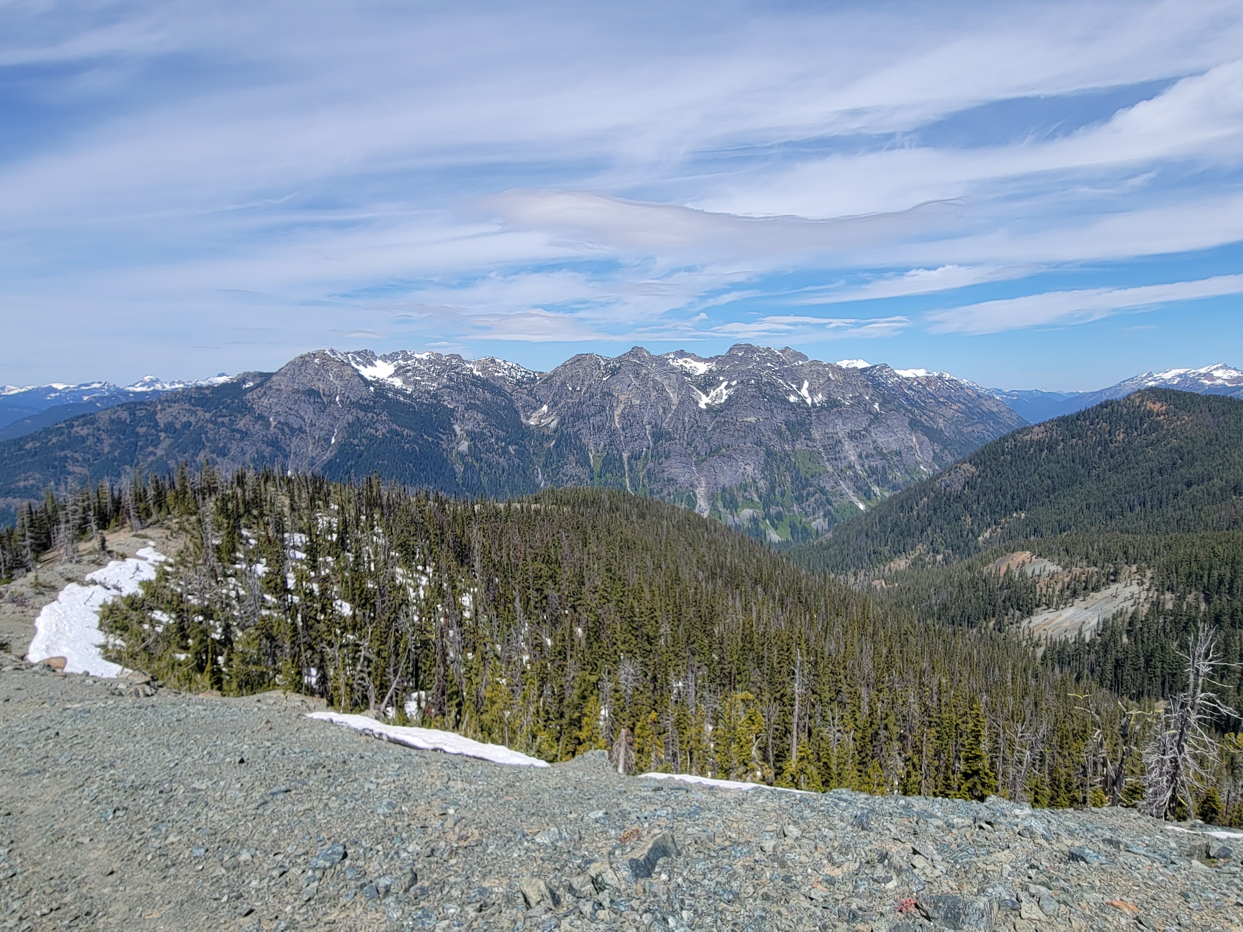 And we crested the pass and what did we see?! Was it more larches?? You bet your ass it was more larches. The trail snaked along the gravelly hillside (tease!) before turning straight into the next grove of larches. Trail optimized for larches.