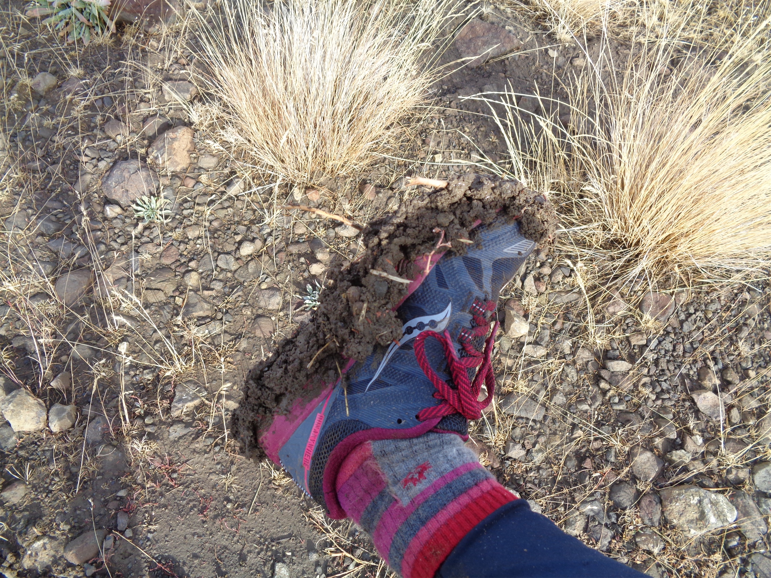 The first 2.5 miles gain the 2,400ft of elevation, so needless to say I hiked those.There was no one else in sight. The trail briefly follows Umtanum Creek (you need to duck under some train tracks, or go over but I’m lazy so I went under) before hanging left and starting up through quaking aspen and sagebrush and tall grasses towards the ridge. It was quite muddy, and I found the only flaw in my running shoes that I have encountered so far. With this clay-ish-mud mix, the lugs on my shoes just got caked with mud until I was basically hiking on mud pancakes, slipping all over the place. I’d stop periodically to scrape off the bottoms and delicately tiptoe up the trail.