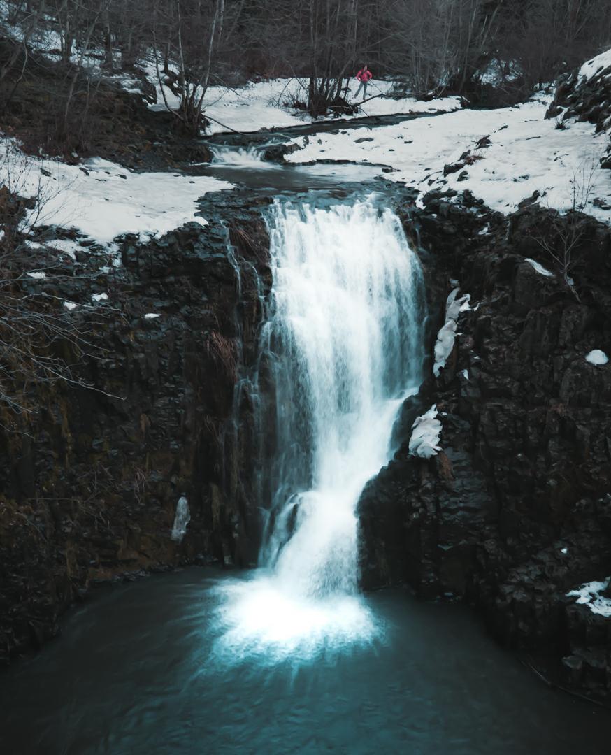 Well, the hike was completely iced over, and yours truly had only brought sneakers and mountaineering boots. And I left the boots in the car. So I was in my 2012 running shoes, which it turns out are mediocre at best on ice. So we slipped and slided all along the trail, finding game trails and social trails higher on the slopes to avoid the icy ground next to the river. Longest. Mile. Ever. Luckily everyone else was a dumbass like me and only had sneakers, so I fit right in. We made it to the falls, Brad went around to face the waterfall and I waited at the top. I had expected it to be a hike where you walk up to the bottom of the falls and are staring right at it, but you’re actually at the top looking down on it, with the option of scrambling down to the base. I stood, wiped out while standing, and waited for disasters to happen while Brad and two other hikers checked out the view facing the falls. I think SAR has ruined my invincibility.