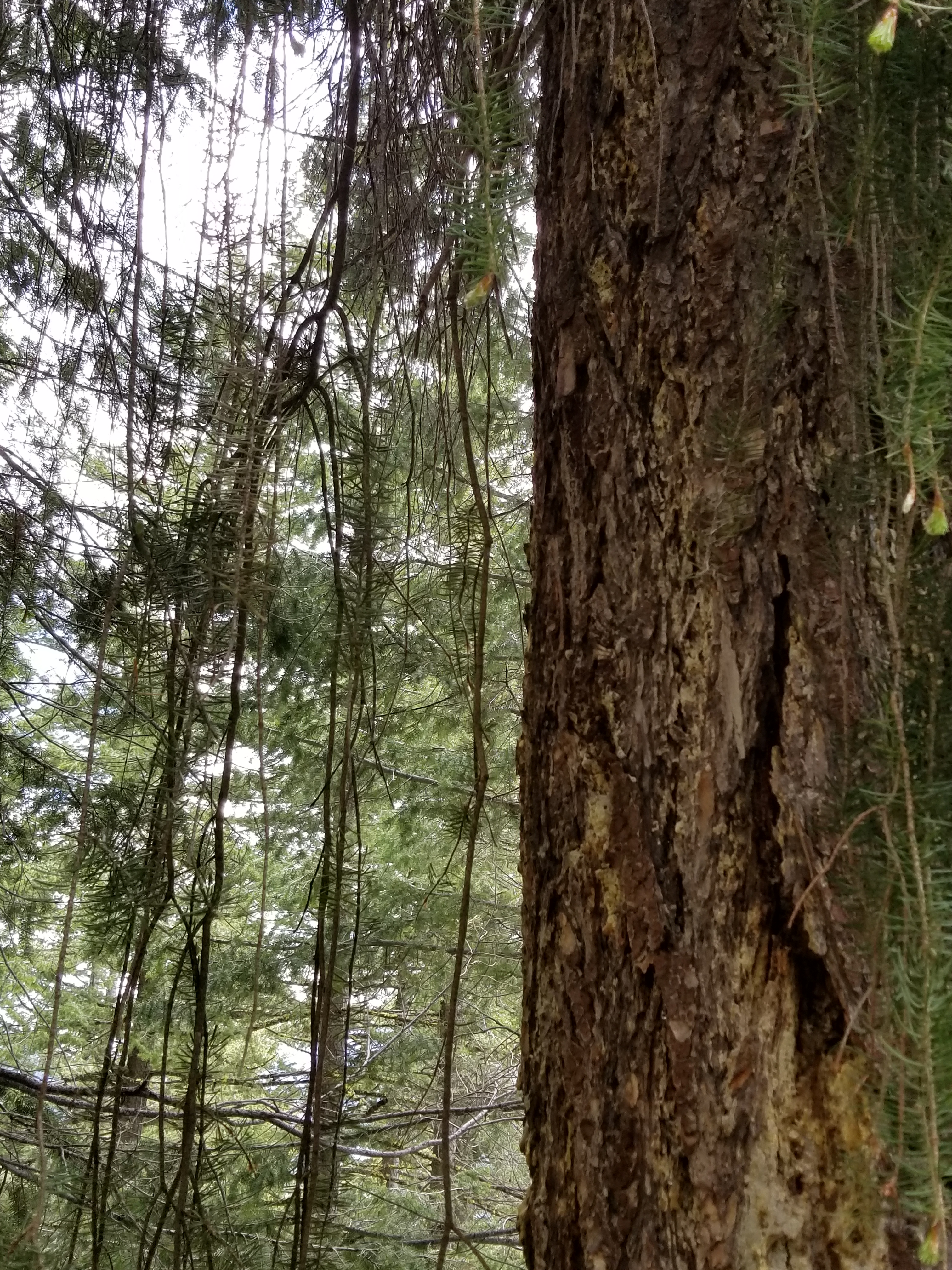 I’m stumped (ha) by the tree on the left. I stopped dead in my tracks because it’s like a weeping willow, except it’s a conifer. It has pine needles. Those aren’t broken dropping branches, they just grow like that. I don’t know anything about the flora out here and I’m super curious what this is because I don’t think I’ve seen anything like it. Between this and the wildflowers and the dappled sunlight and the soon-to-be-stifling heat, it felt like July. It was hard to believe that we had just been making turns on several feet of consistent snow and that it was only mid May. Shoulder season is the best.