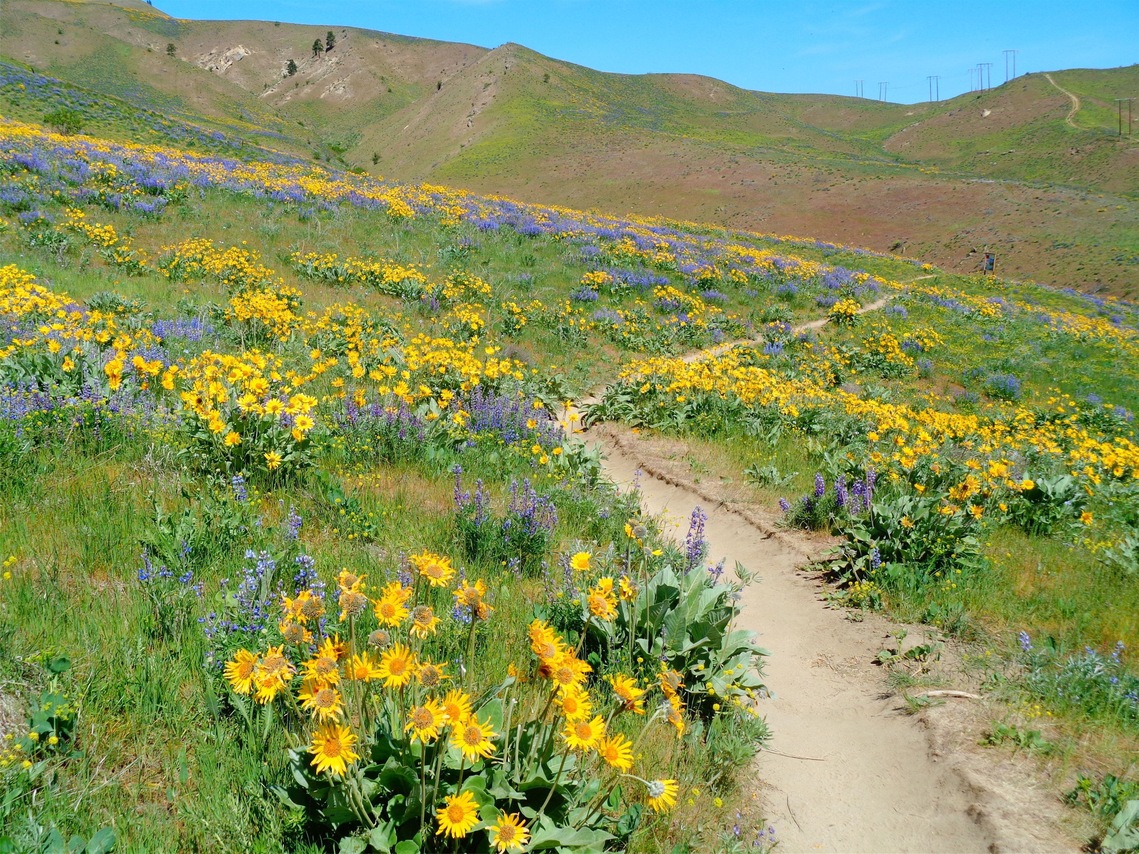 5) Sage Hills. Holy crap. This is like a whole ass with the effort of a half ass, assuming you’re okay with a 3hr drive for 3-9 miles of hiking depending on how far you want to go (the wildflowers start immediately). Best wildflowers I have seen maybe in my life. And it’s basically in someone’s back yard. It’s a system of multi-recreation trails outside of Wenatchee, I literally parked next to someone’s driveway and had my mind blown for the next two hours of vibrant yellows and purples. This might get its own post eventually because the flowers are INSANE and it was like sitting in a disney movie. It’s like larch season. Chugging cold water when you’re hot and thirsty. Blankets and tea after a day of skiing. Oversaturated colors after a greyscale Seattle winter. You get it.