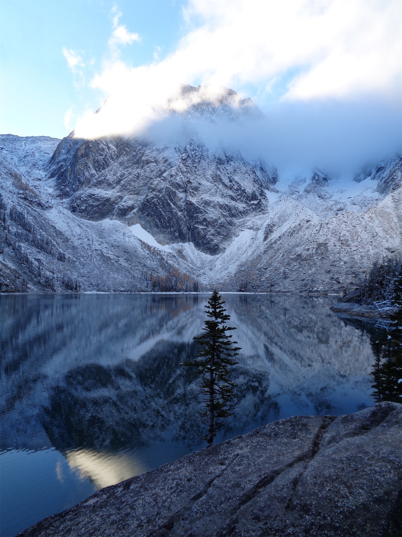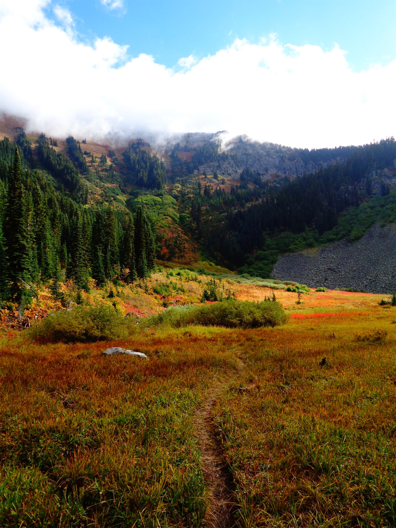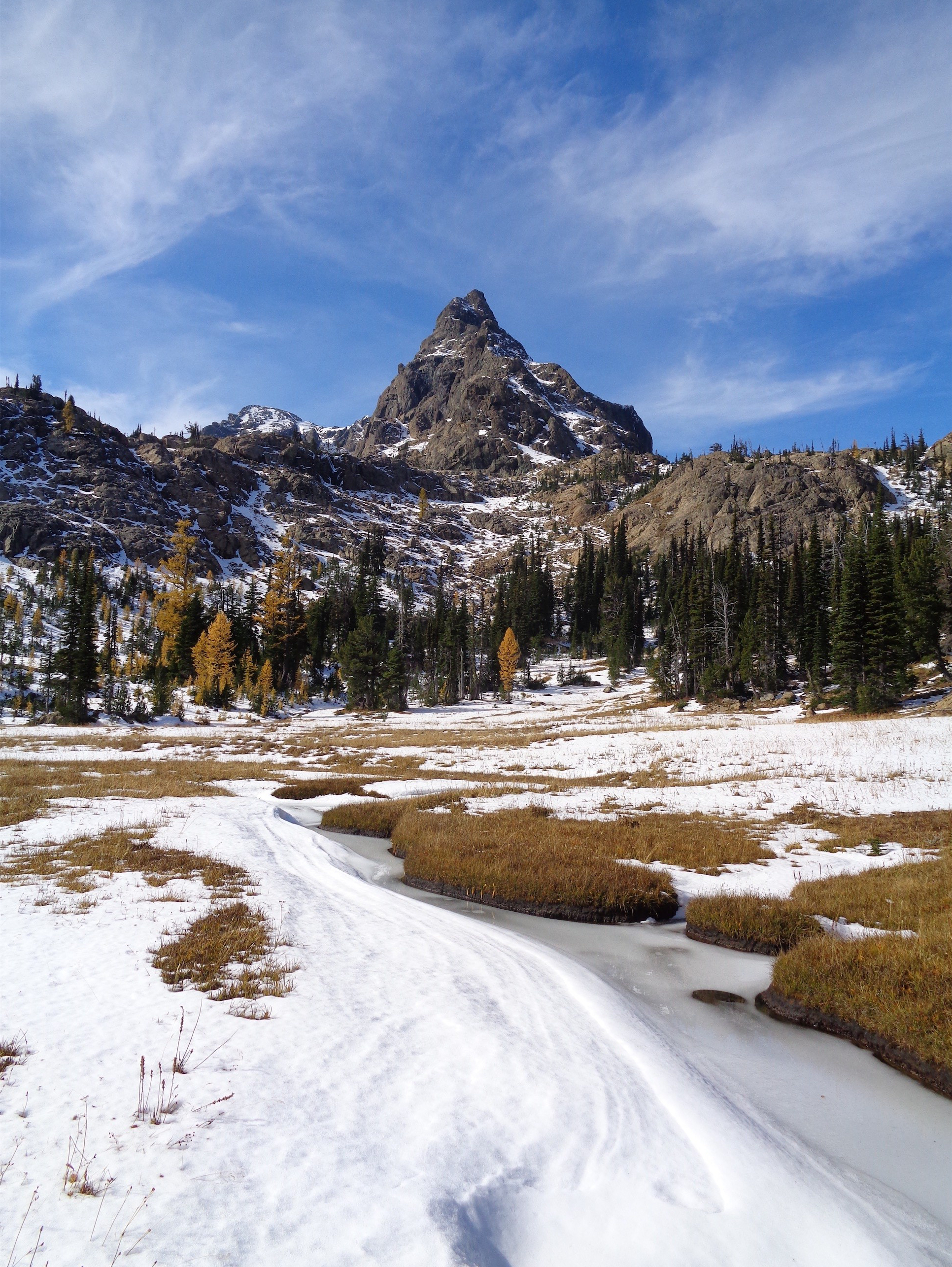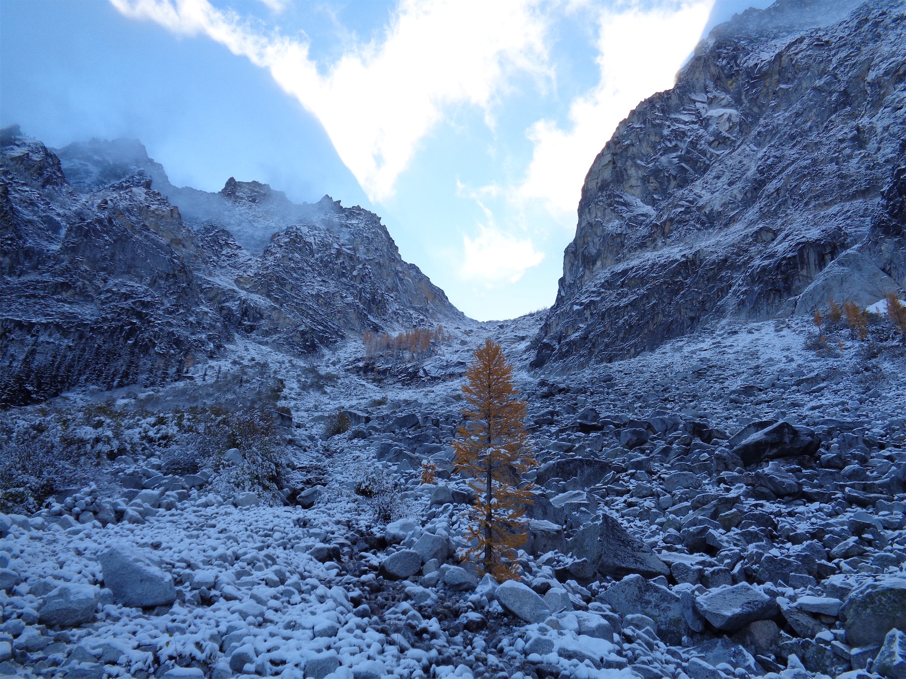 We got to camp around 3pm and did basically what we had done that morning, set up tents and sat in dry spots for as long as we could tolerate. 5pm was dinnertime, we huddled in a dry grove between trees. Nobody was using the official picnic tables, which were in clearings fully exposed to rain. I think I was in my sleeping bag by 6:30pm where I slept for 12 hours because there was nothing else to do in the rain and the cold and this was another campsite below tree line with no larches and no views and only trees and probably bears. I peeked my head out occasionally to see if clouds were moving. The one pro of camping below tree line is some of the trees are dense enough that they maintain dry spots so you can at least sit outside briefly. I barely survived the pit toilet. It smelled horrible. My head cold must finally be passing.
