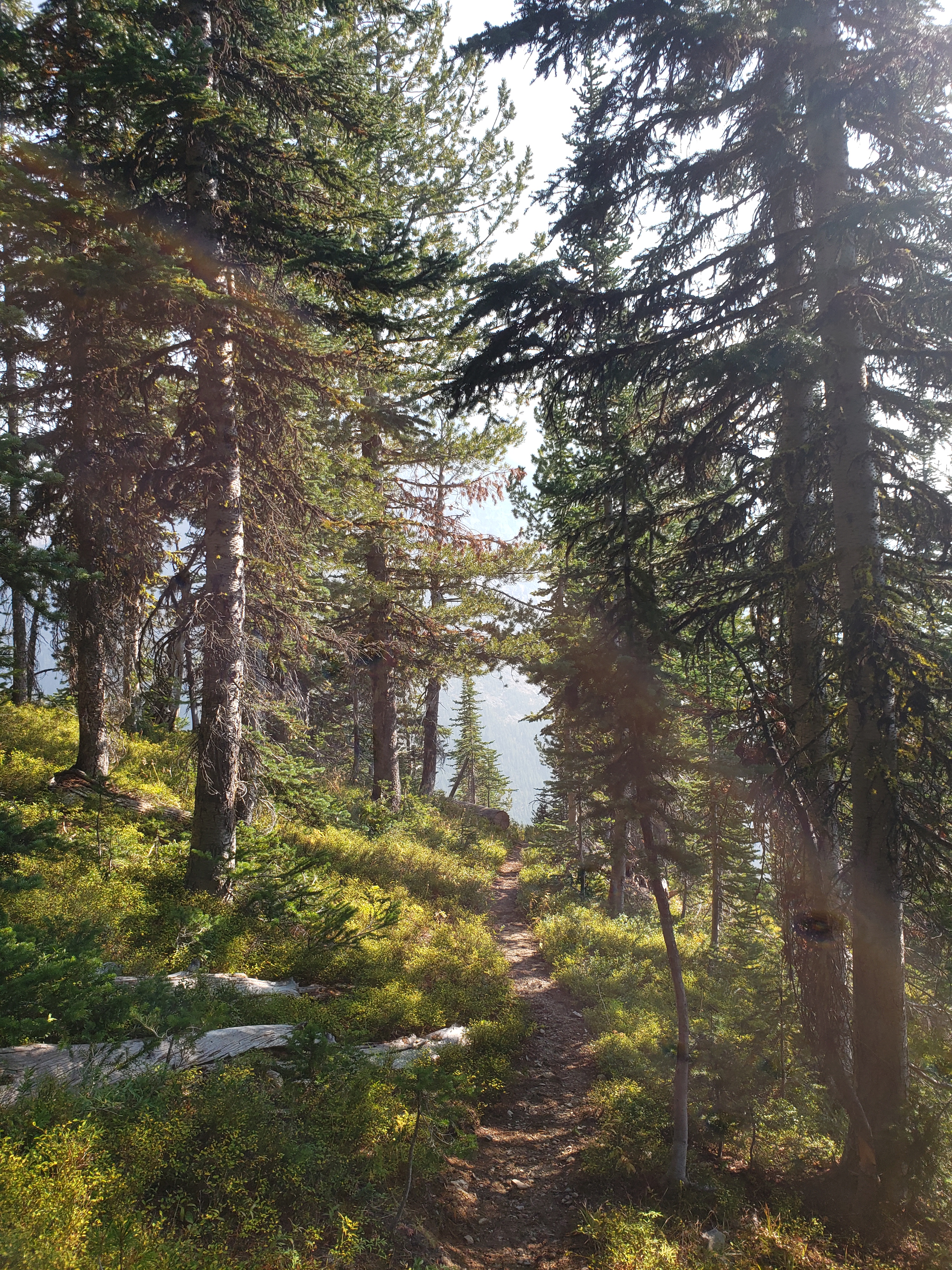 The hike up to Floe Lake was pleasant, a gradual gain for 6 miles through a wide open old burn zone. Most of the elevation gain was close to the lake. I looked up and said “that’s gotta be only like, 300ft” and Brad goes “yeah.. actually it’s like 300m, you’re only off by a factor of 3x.” Ah yes my uncalibrated city eyes complementing my tired city legs. Let’s just skip to the larches.