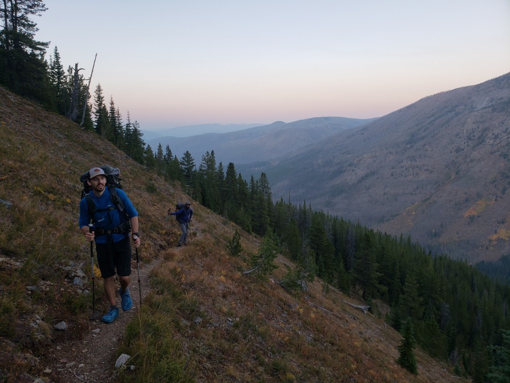 Once the larch grove was past us, losing that 3k elevation gain was kind of brutal. Switchbacks forever, and steep, and I had done a pretty good job of keeping my cardio up but nothing had prepared my legs for jarring downhill. But we saw a porcupine booty bobbing through the trees, I’ve only seen a porcupine once before. As it got darker outside I started bugging out about bears. Every switchback, every bend in the trail, every tree out of the corner of my eye, bears everywhere. Everybody had me psyched out. I felt like a dork carrying bear spray but everyone kept telling me ohhhh no the bears are the real deal there. I was guaranteed to run into a bear. But soon enough it finally flattened out, my legs relaxed, my brain relaxed, and we stumbled into camp. Far below treeline right next to a river. With no larches. And no views. Just trees and darkness and probably bears.