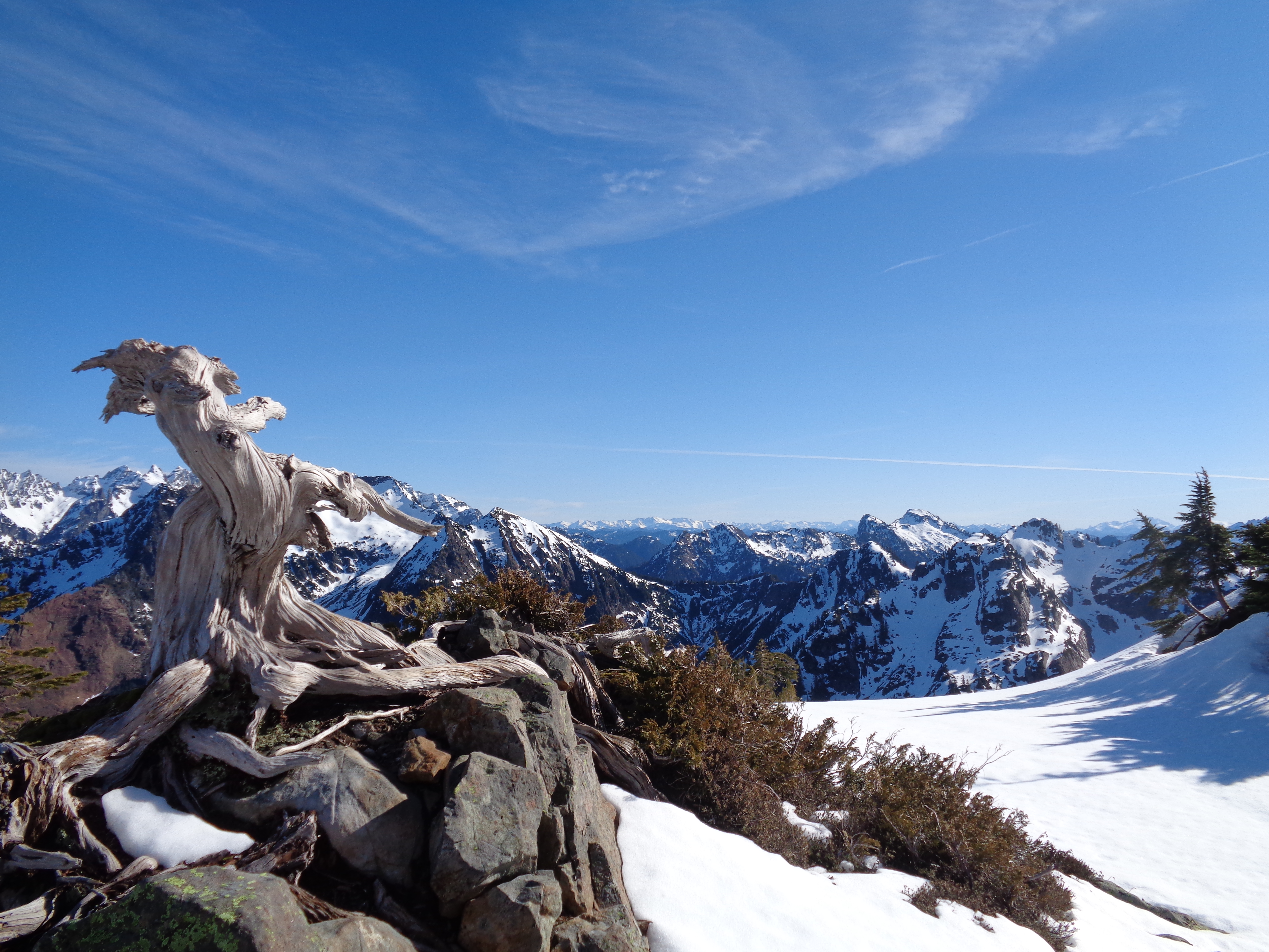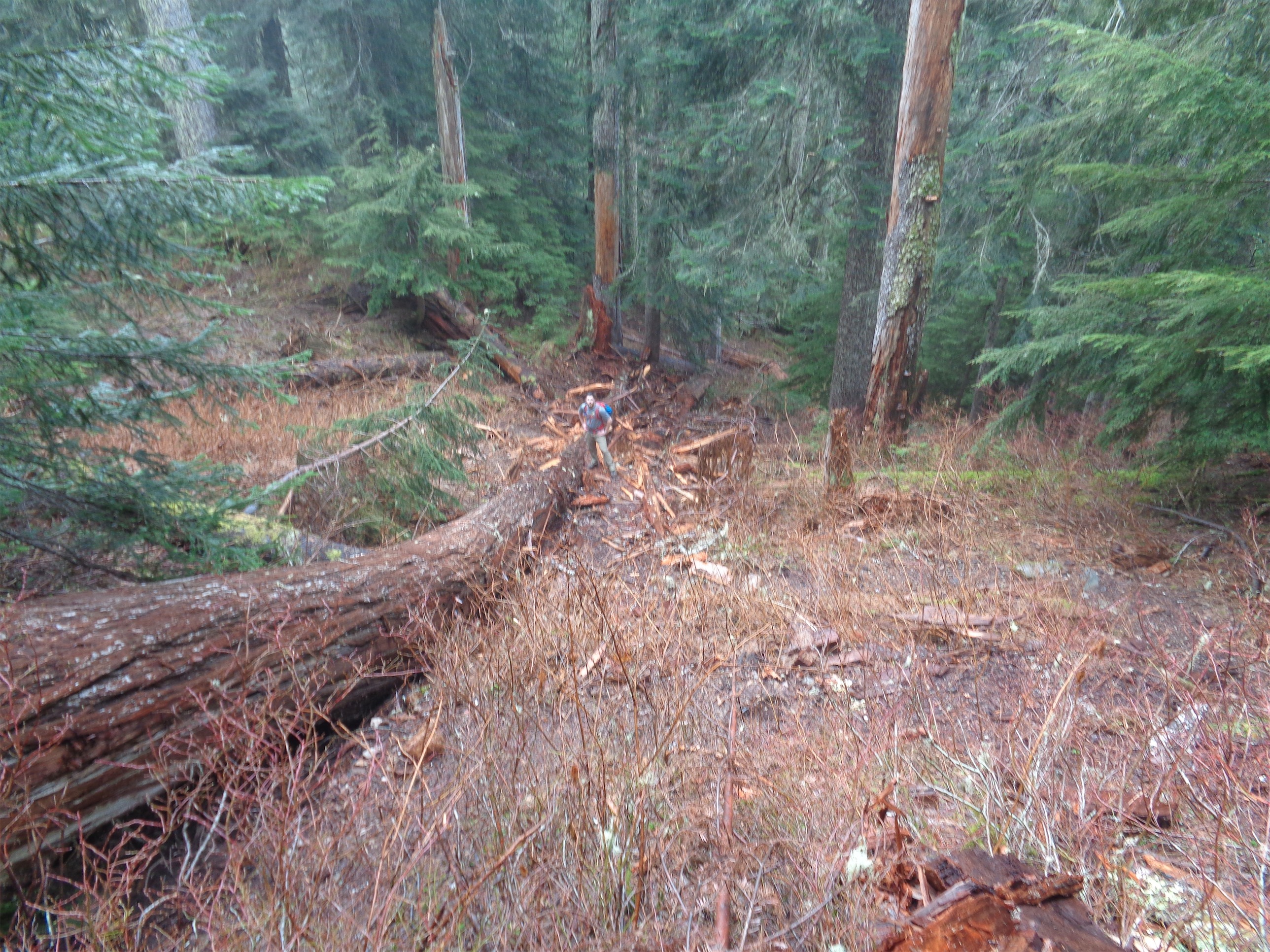 There were a couple blow-downs to get over, and some tree caves to explore. And plenty of small babbling creeks crossing the trail. Wear waterproof boots, folks. Jonathan almost lost one of his mid height boots in a mud puddle, it was that deep.