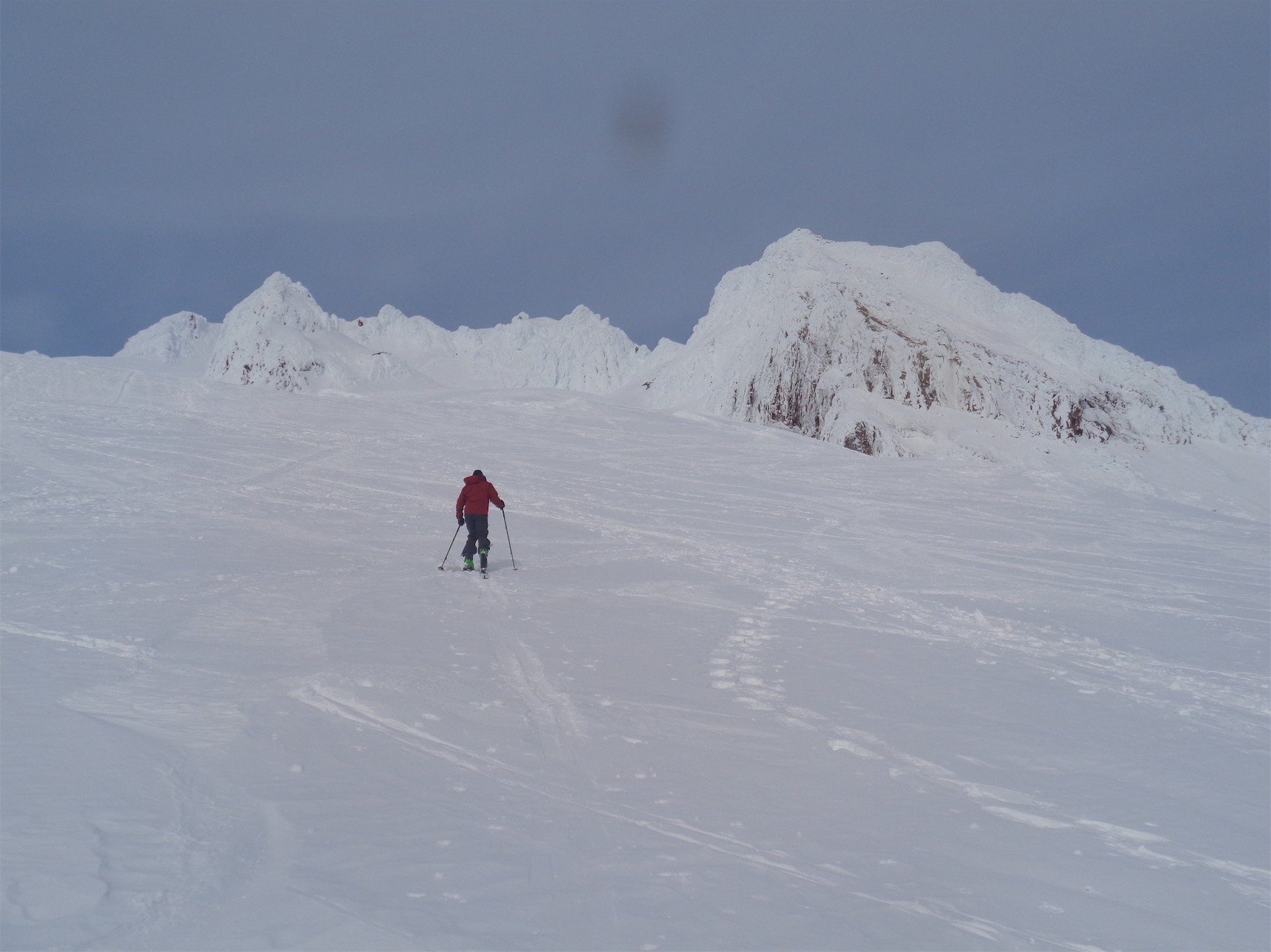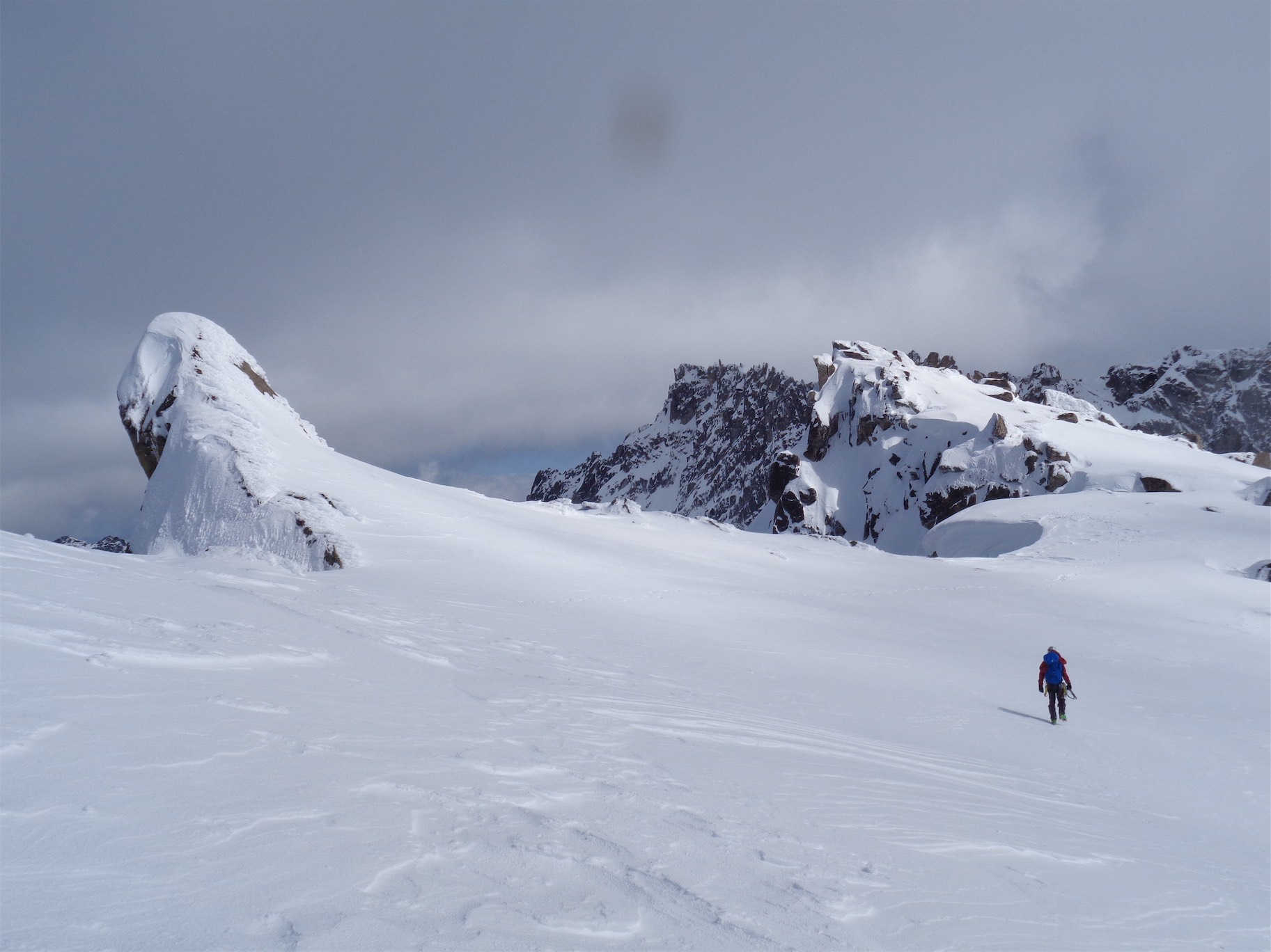 Crossing the glacier, looking up at Torment