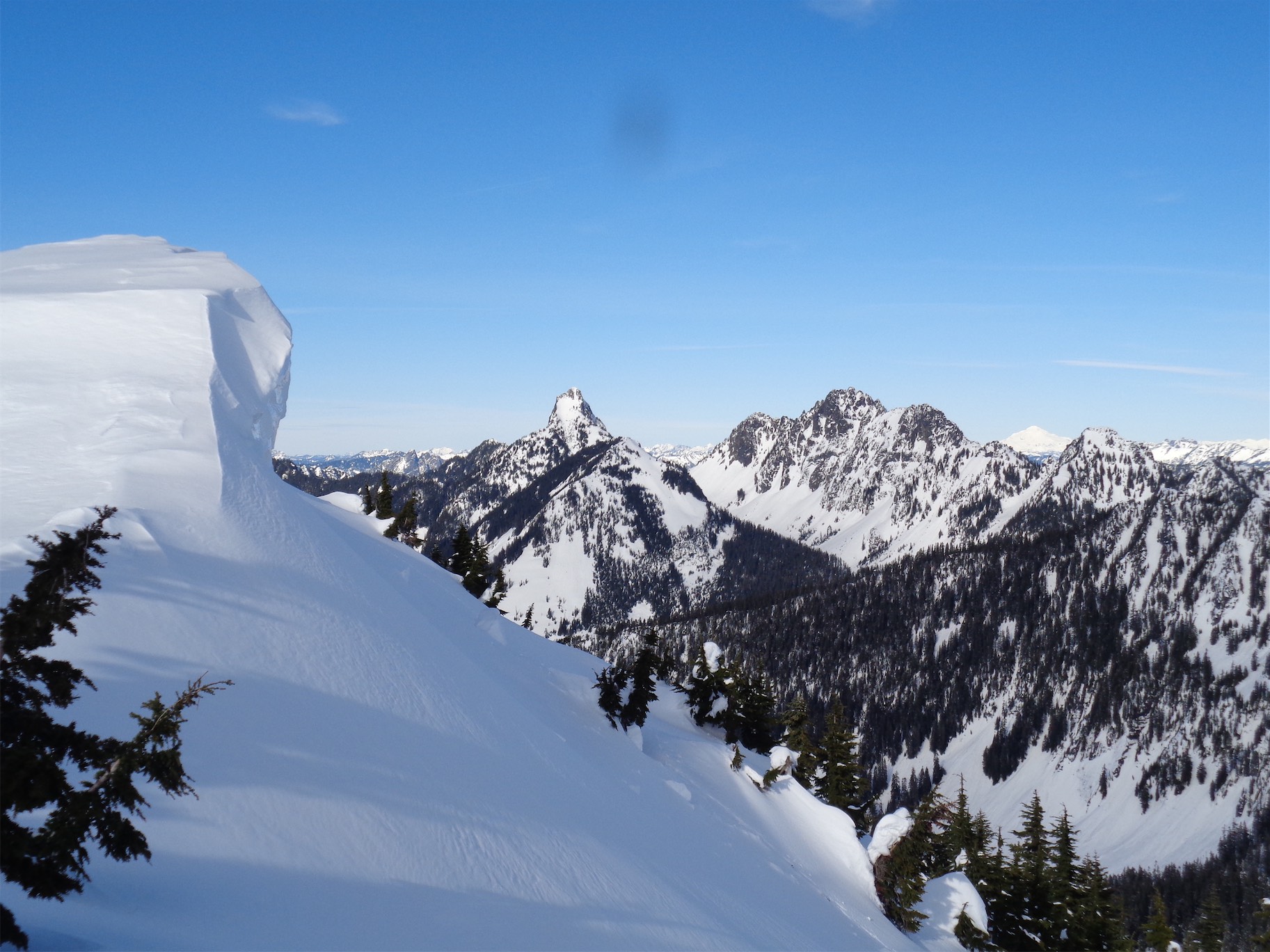 The rest of the cars had left. I’m sure the trail to Pratt was a highway of trampled snowshoe shaped steps, but we chose the route less traveled. Why snowshoe on a highway when you can flounder in powder for a few hours and enjoy a winter summit of a crazy popular summer peak? I had been up Granite a few years ago, but socked in by fog. Here’s a rare link to one of my early blog posts before I became so wordy. I’d say it was a hell of a lot better this time around! And did I mention it’s barely an hour from Seattle? Check out those views!