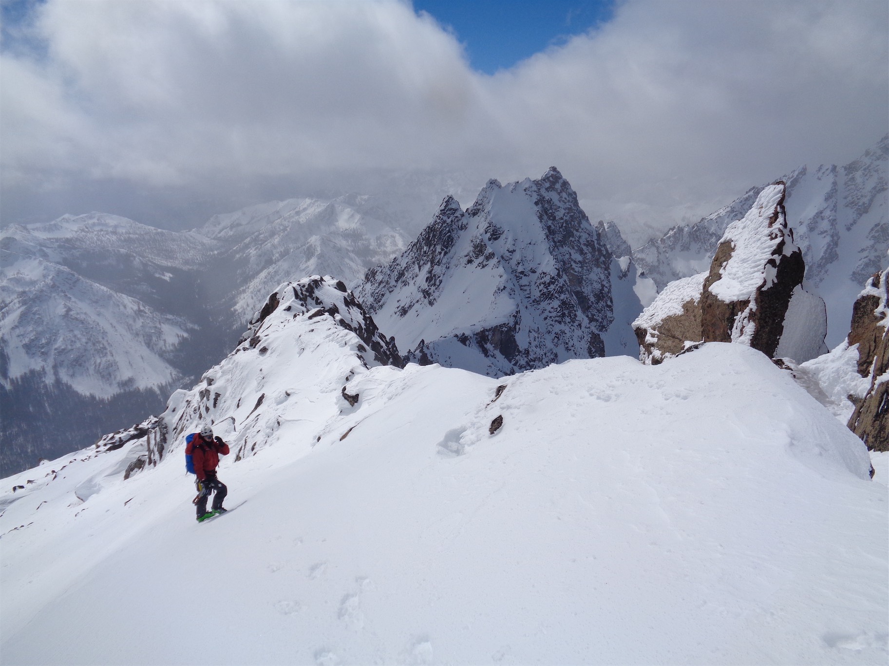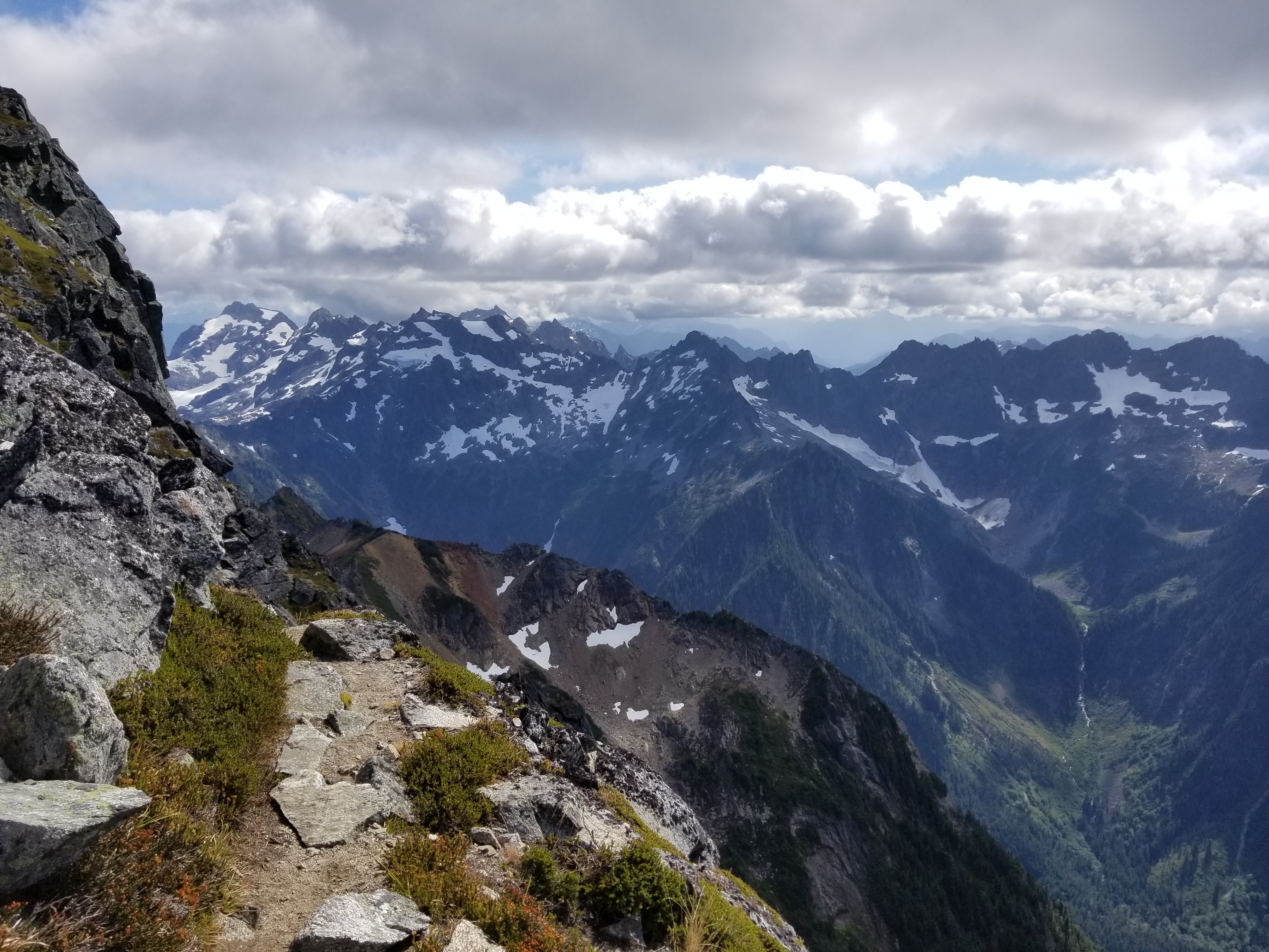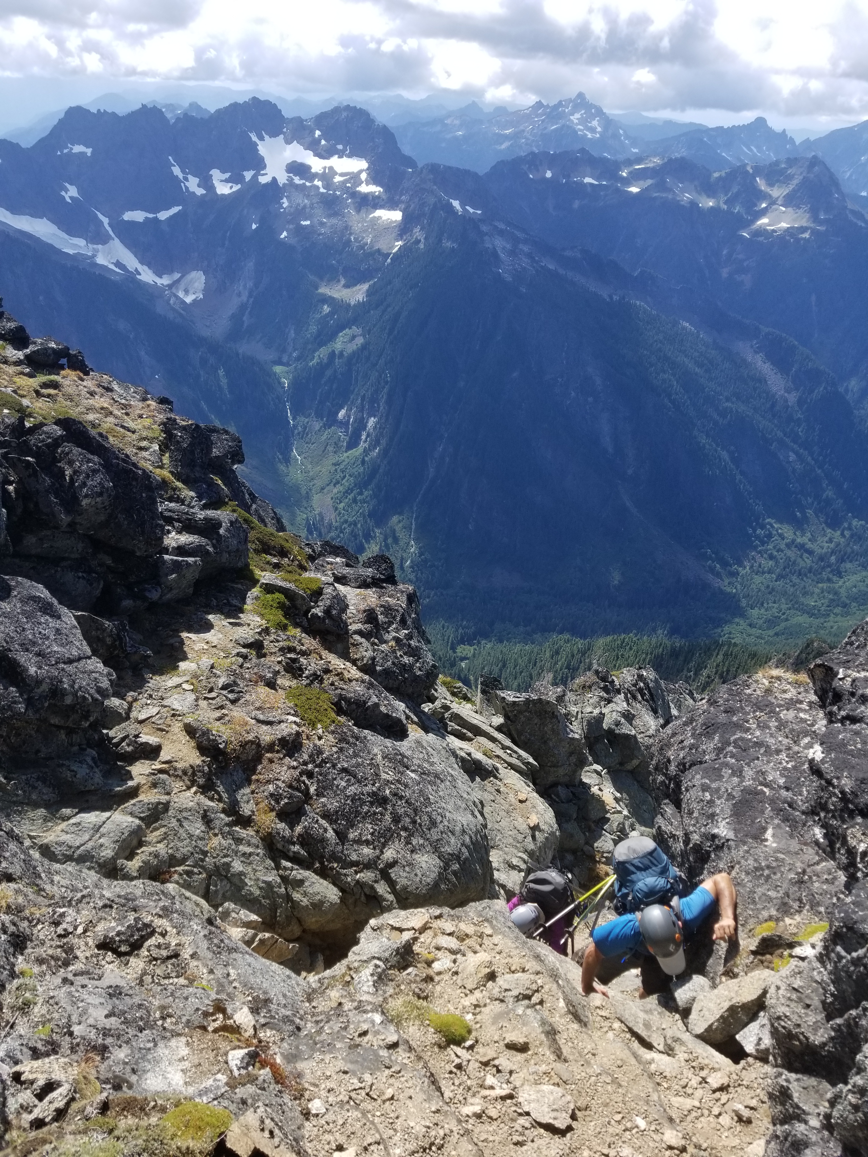 After that it was mostly cruising. I think we made it notch to summit in 45 minutes, maybe an hour. Again, besides a 5.6ish crux, most of the climbing was 4th or 5th class scrambling There was a slight bouldering move where you drop down just before the summit, but it isn’t difficult, in fact it was probably one of my favorite moves of the entire climb in both directions. It just felt very fluid going in both directions, which is always the feeling I’m after. Before I knew it, we were on top, looking out at the Eldorado massif and Torment and Johannesburg and Formidable and Sahale and a world of peaks I haven’t even come close to touching yet.